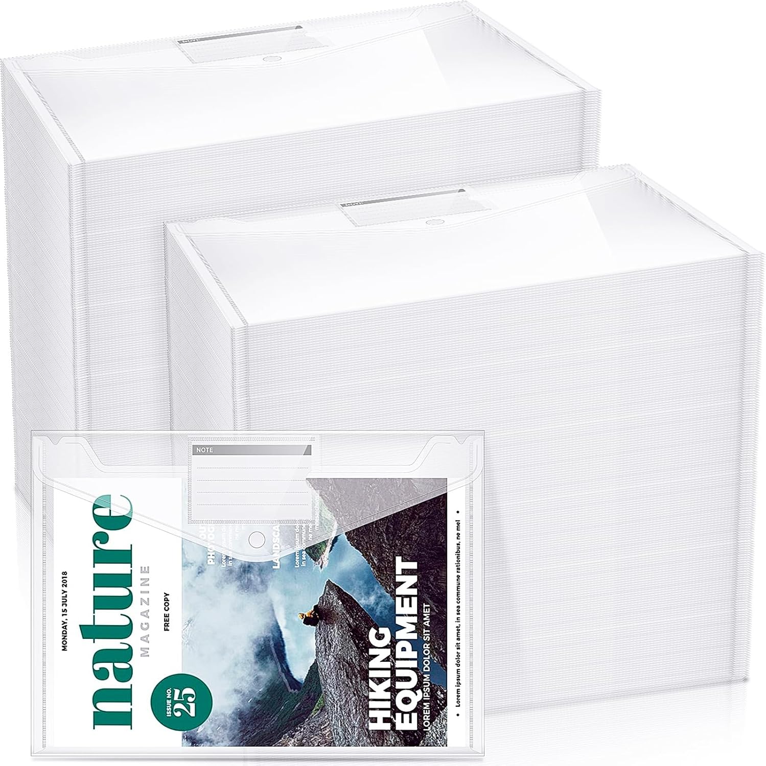 - Button Closure Design: the A4 size envelope folder designed with snap button, making it easy to open and store files, and the files will not easy to slip out and not easy to lose; The poly envelope is transparent which keeps contents visible, you can easy to find files without opening the envelope