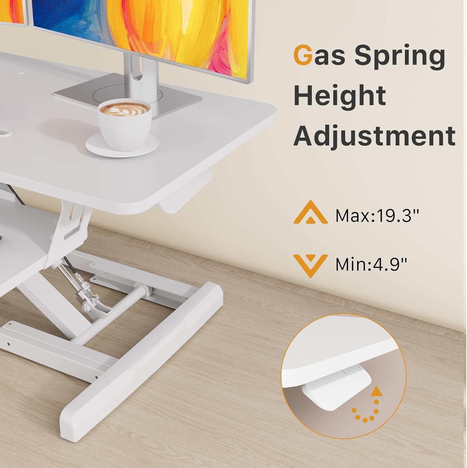 - Desk Riser for Instant Sitting to Standing: Standing desk converter allows you to elevate your workstation from 4.9” to 19.3” smoothly in seconds, simply squeeze the handle and lift your tabletop to a suitable height, reducing back & waist pain
