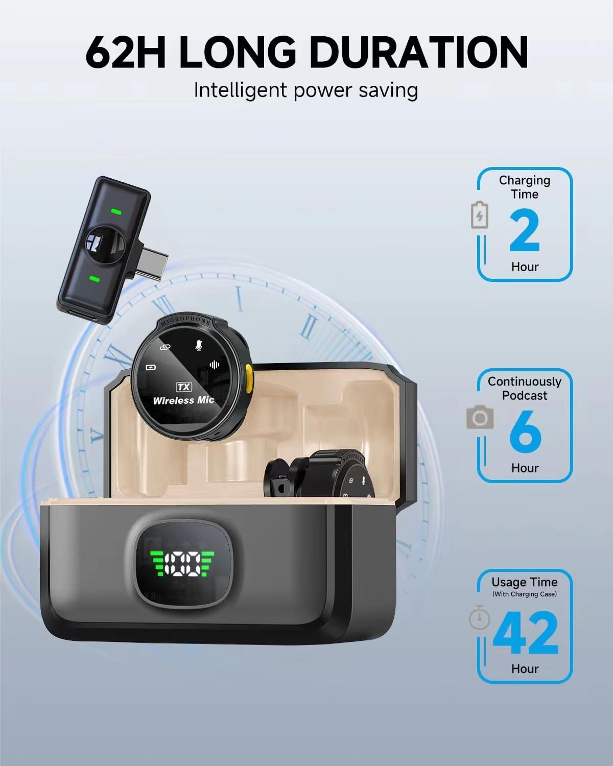 - 165FT Wireless Transmission & Rechargeable: This lavalier microphone boasts a consistent audio signal, capable of reaching a remarkable wireless transmission distance of up to 165 feet. Equipped with a high-quality DSP chip, it ensures even more stable transmission. The wireless microphone transmitter features a built-in rechargeable battery, offering up to 6 hours of operation on a single charge, or an impressive 42 hours with the charging case