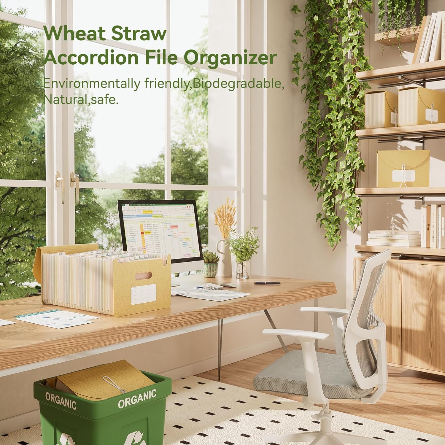 - 【Wheat Straw Material】Ecostash's Wheat Straw Accordion File Organizer are BPA-free, making them safer and healthier compared to plastic and paper file folders. Unlike plastic and paper hanging folders, wheat straw material is sourced from renewable agricultural waste, reducing dependence on petrochemical plastics and forest logging. This helps reduce greenhouse gas emissions, making a collective contribution to protecting the Earth's ecology.