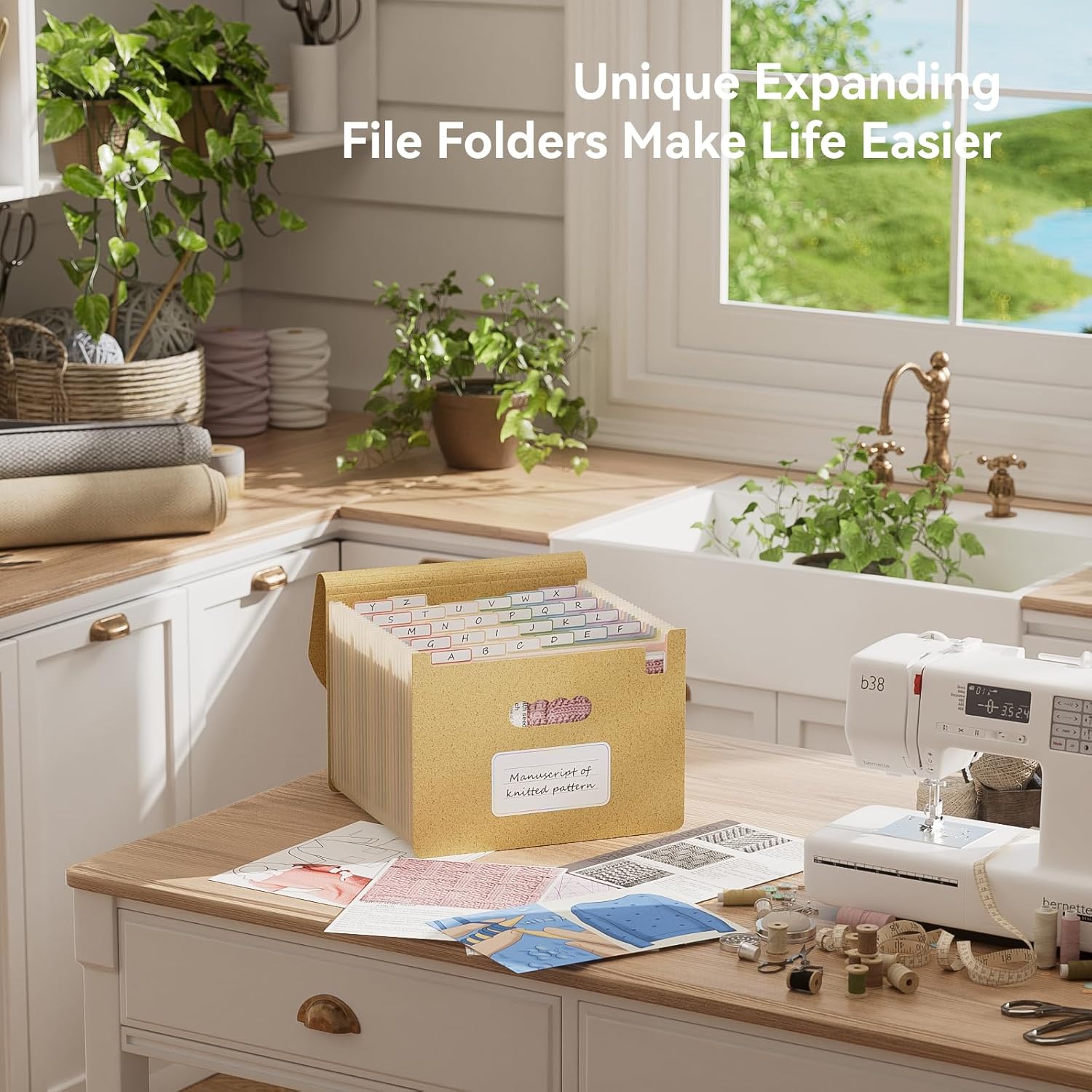 Accordion File Organizer, 26 Pockets Wheat Straw Expanding File Folder, Monthly Bill Receipt Organizer, A-Z Tabs, 100% BPA Free, Return to Nature, Healthy Living, Letter/A4 Size-Wheat Yellow