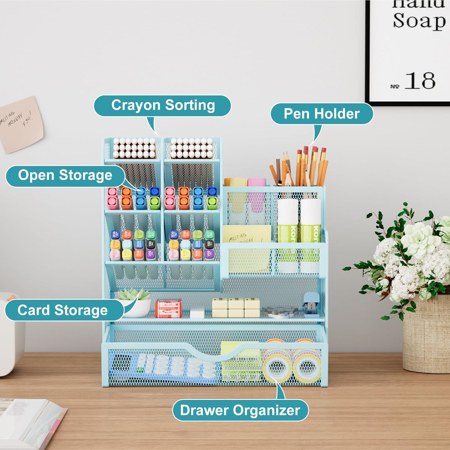 - ăSTURDY AND DURABLEă: The desk storage is made of high-quality metal mesh and built with non-skid feet to make it incredibly stable, which is not easy to get rusty and thereby, keeping the pen holder brand new all the time. The extremely smooth edges will not hurt your things or yourself. for meeting all your demands for home and office use