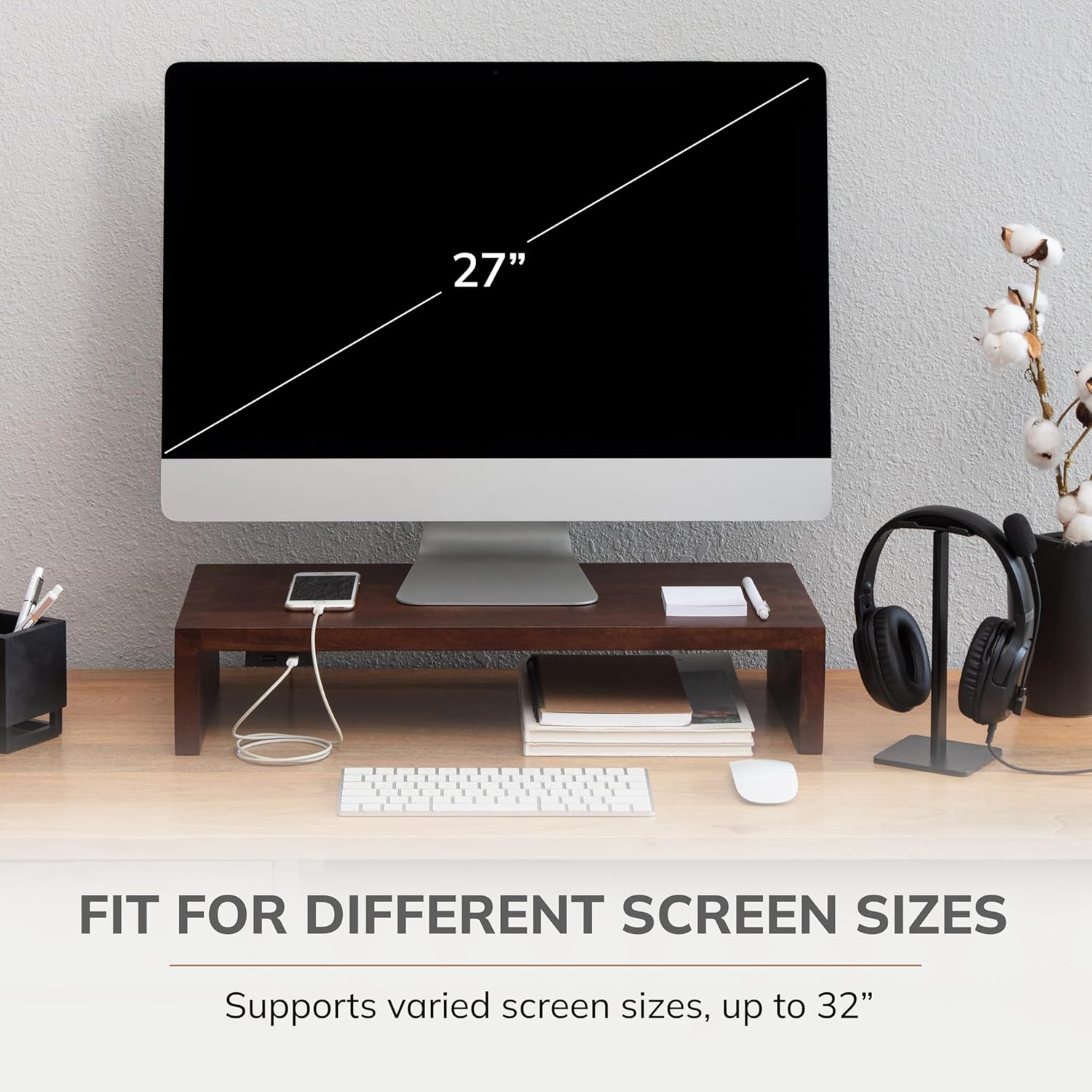 • Ergonomic Computer Riser: Prioritize comfort with this thoughtfully designed computer riser. As one of the best computer risers for desk monitors, the monitor stand wood construction offers an ideal viewing angle for maximum productivity.