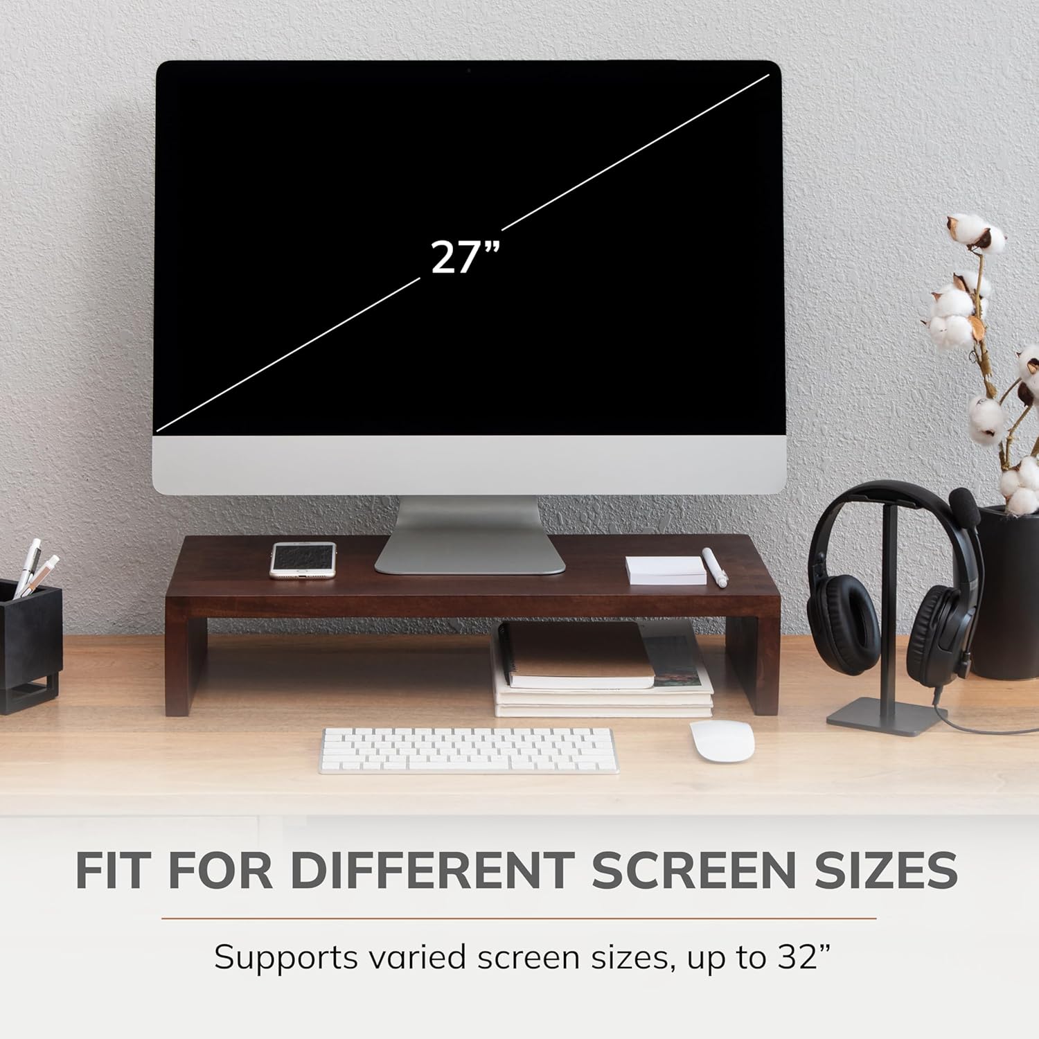 - Ergonomic Computer Riser: Prioritize comfort with this thoughtfully designed computer riser. As one of the best computer risers for desk monitors, the monitor stand wood construction offers an ideal viewing angle for maximum productivity.