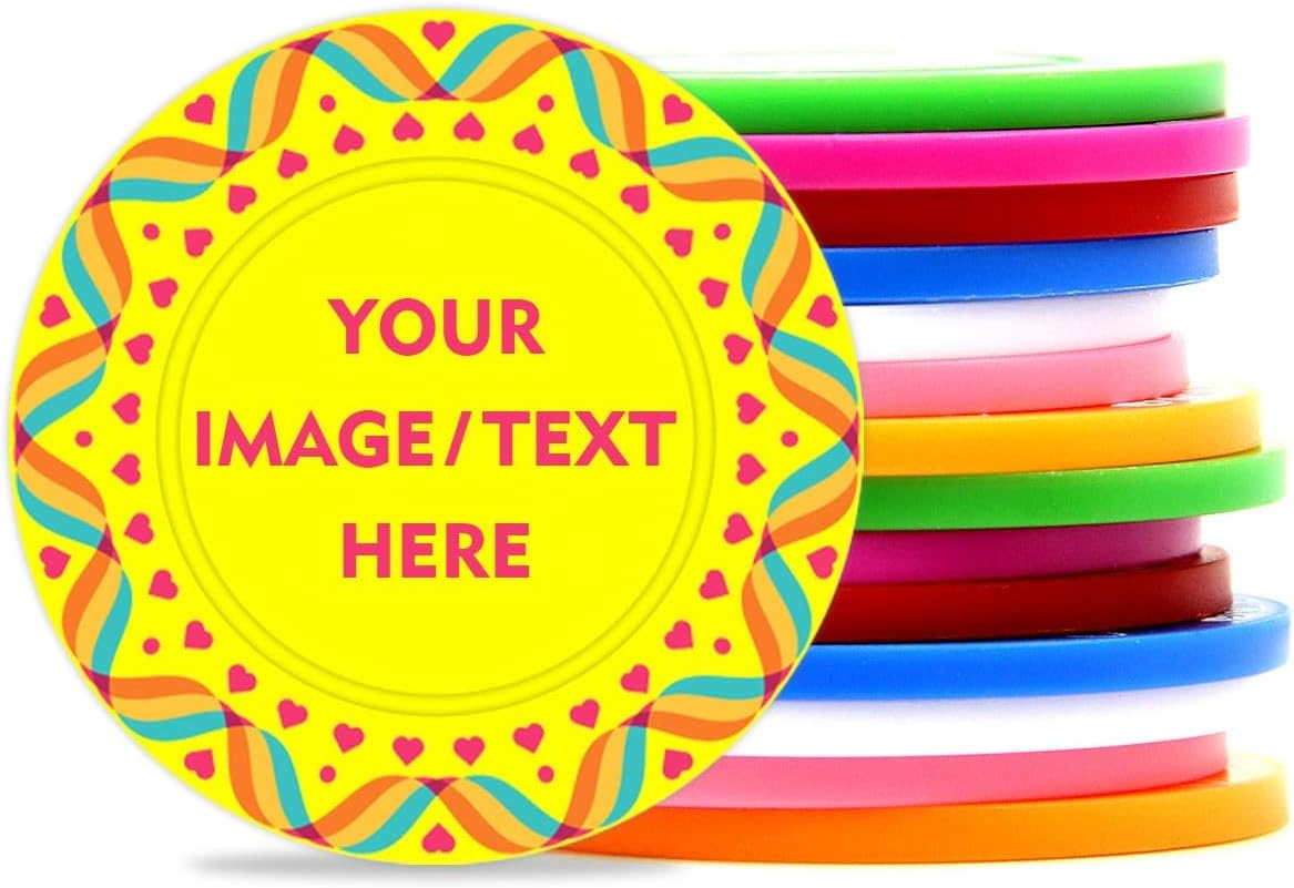 100 PCS 37mm Plastic Poker Chips, Personalize Your Chips with Logo and Text, for Bingo Game, Chess Room, Casino Theme Party