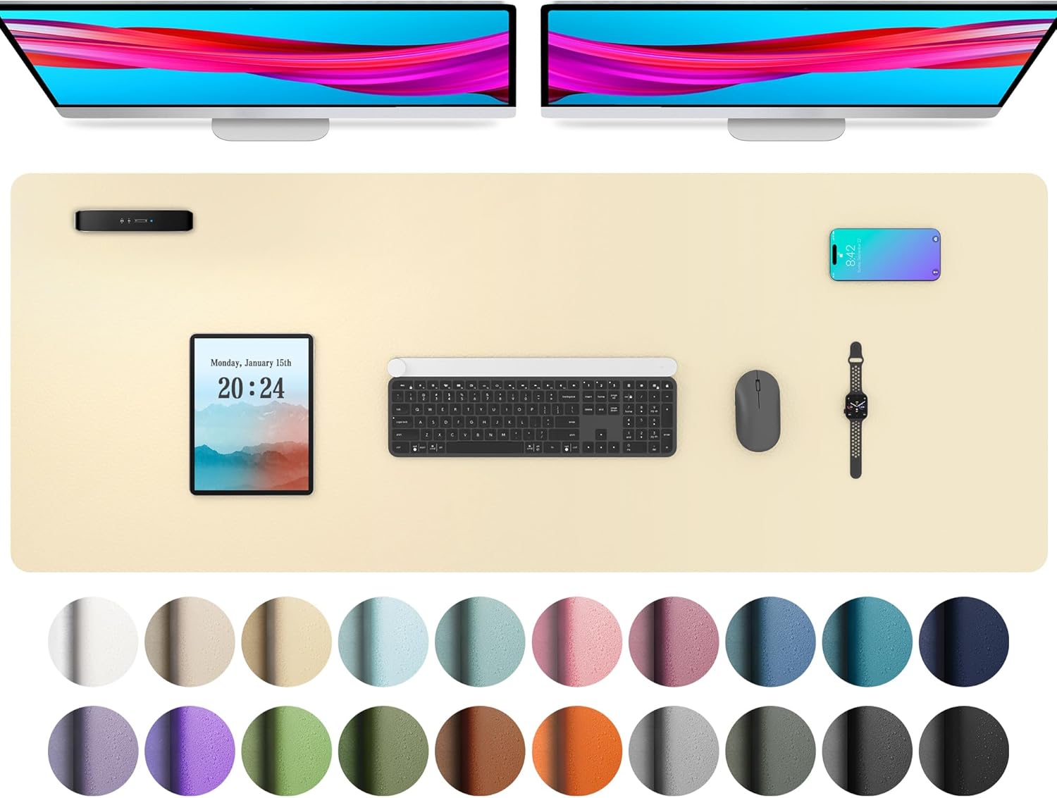 Aothia Leather Desk Pad Protector, Office Desk Mat, Large Mouse Pad, Non-Slip PU Leather Desk Blotter, Laptop Desk Pad, Waterproof Desk Writing Pad for Office and Home (48"x17", Soft Yellow)