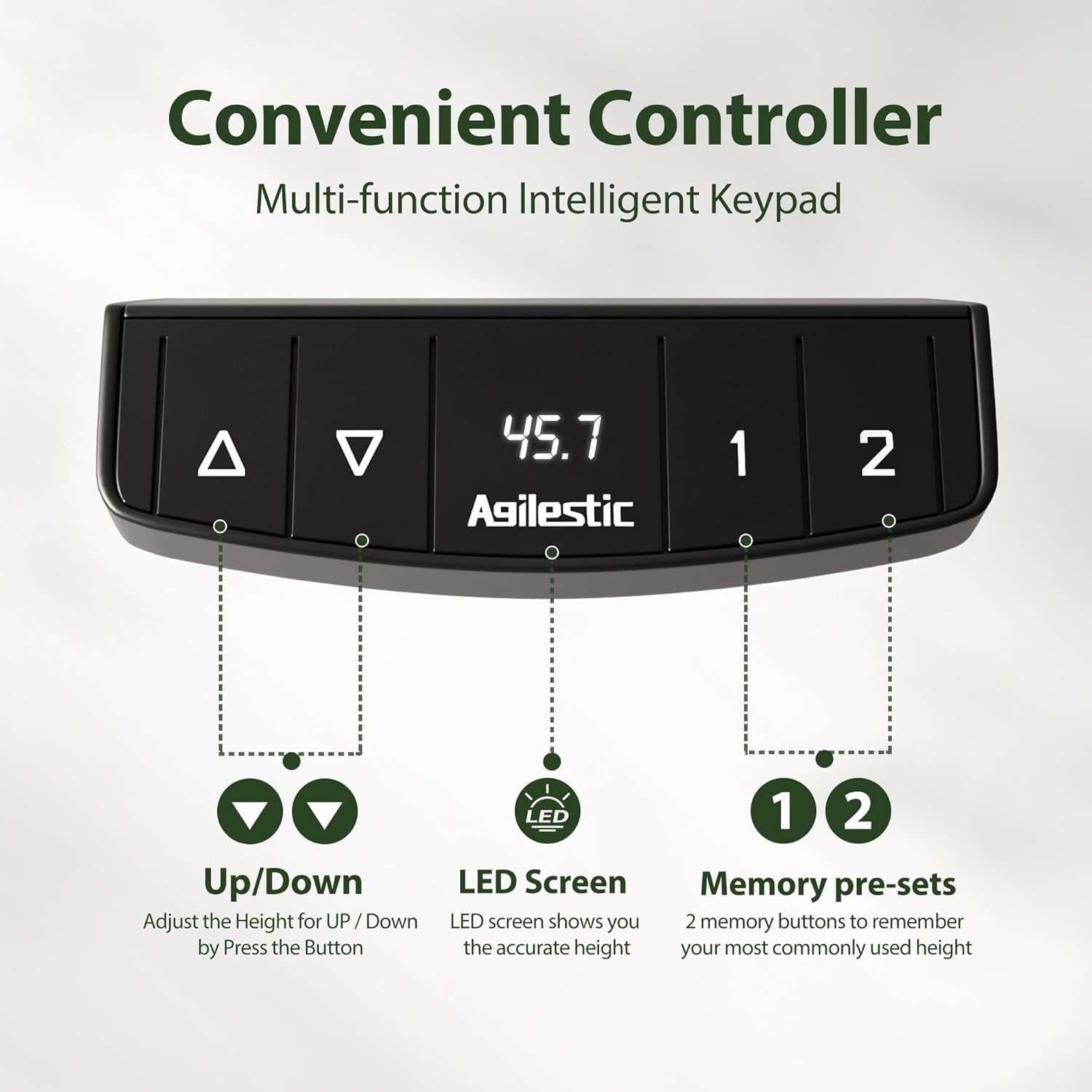 - Elevate Your Workspace: The Agilestic 48 x 23 Inches Electric Standing Desk is designed to enhance your productivity and comfort. Its sleek white finish and modern design fit seamlessly into any home or office setting.