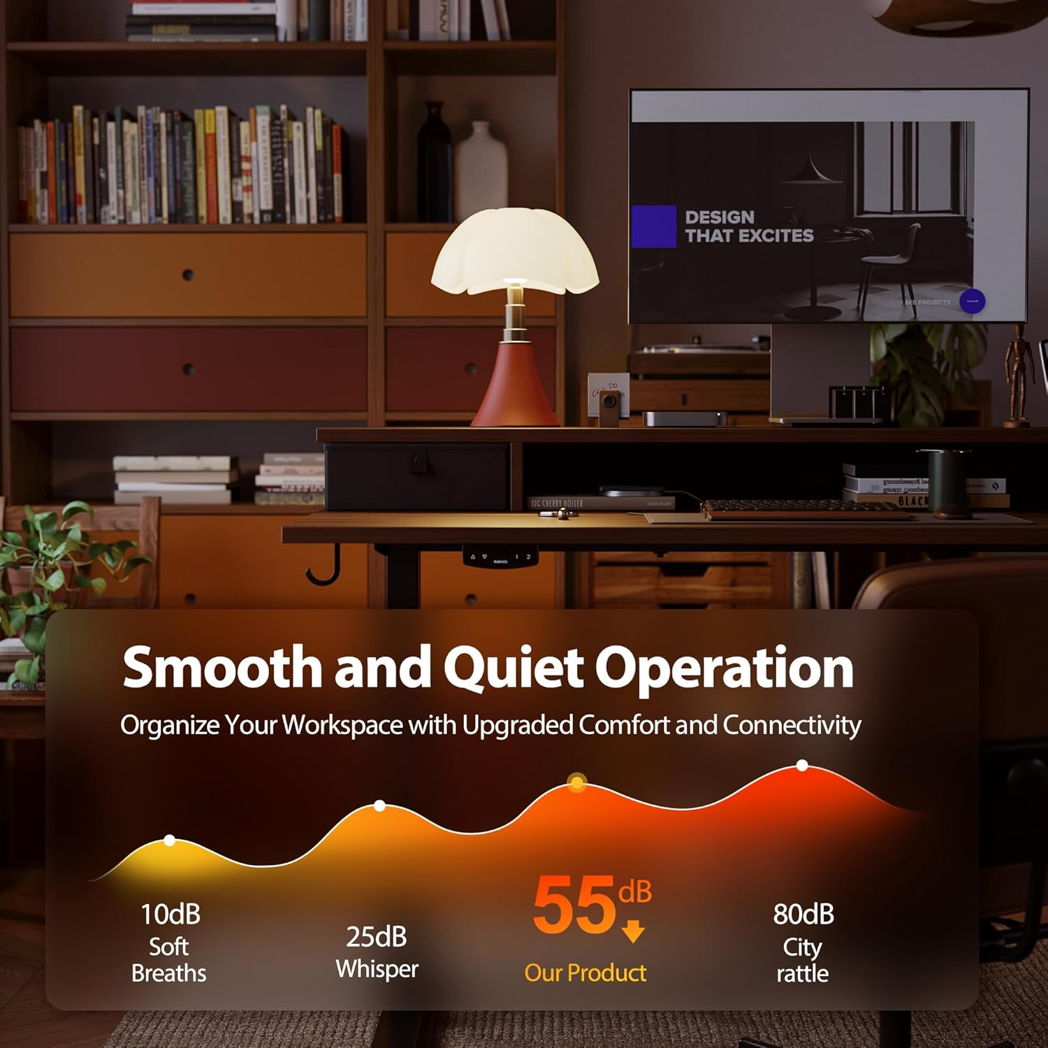 - Adjustable Height for Sit and Stand Flexibility: Effortlessly switch between sitting and standing with the electric height adjustment feature. The desk height can be adjusted from 27'' to 45'', allowing you to find the perfect position for your work and health needs. The quiet motor operates below 55 dB, ensuring a peaceful work environment.