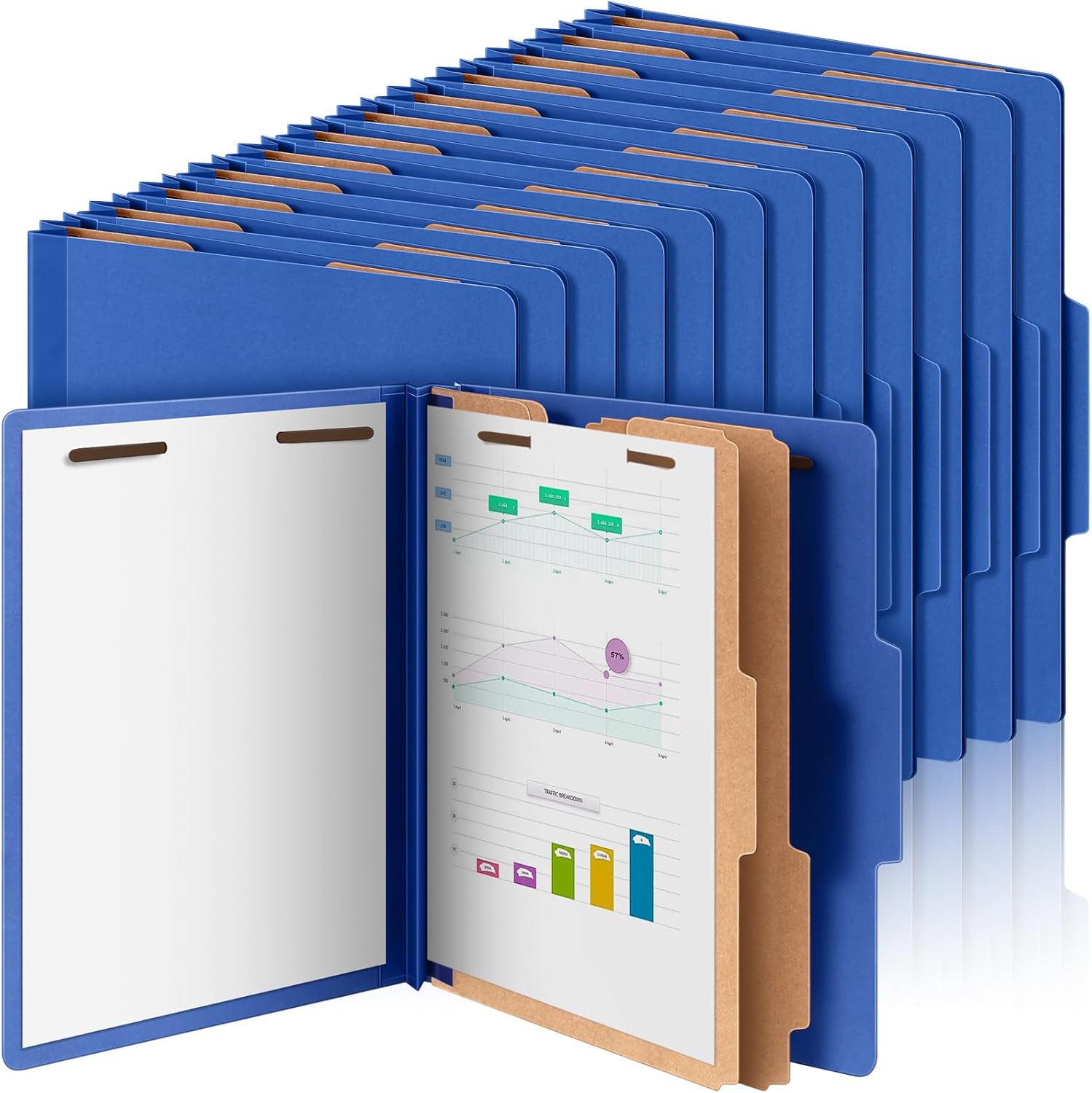 48 Pcs Classification Folders Letter Size, 2 Divider Pressboard File Folders with 3. 5 Inch Expansion, 2 Prongs Fastener, Heavy Duty Office File Organizers for Teachers, Medical (Dark Blue)