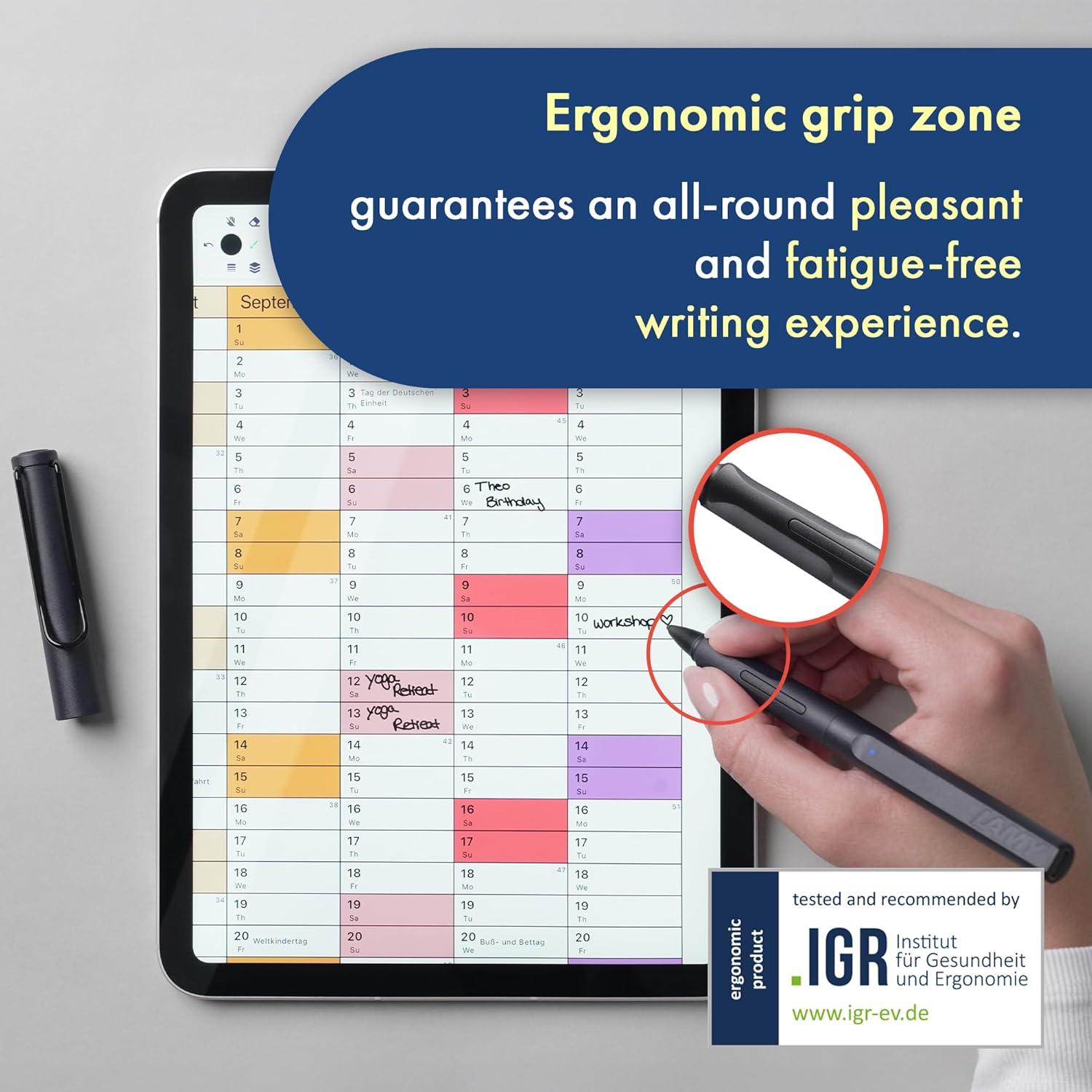 LAMY Safari Note+ All Black iPad Pen - Stylus Pen with Palm Rejection, tilt Sensitivity & Ergonomic Grip - Compatible with Various iPad Models & Generations - up to 10 Hours Battery Life