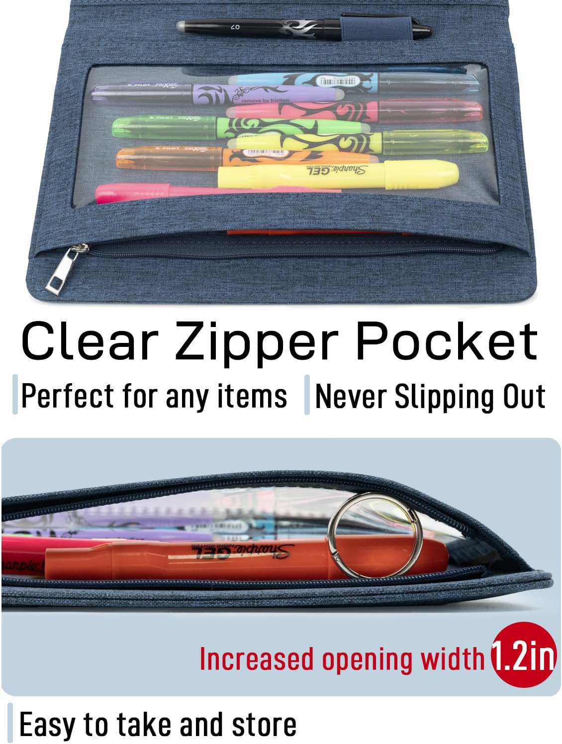 - The Newly Upgraded Zipper Pouch - The new design features a 50% wider zippered opening, providing even greater convenience for storing and accessing all your essentials, such as colored pencils, rulers, mini tablets, or even your favorite snacks!