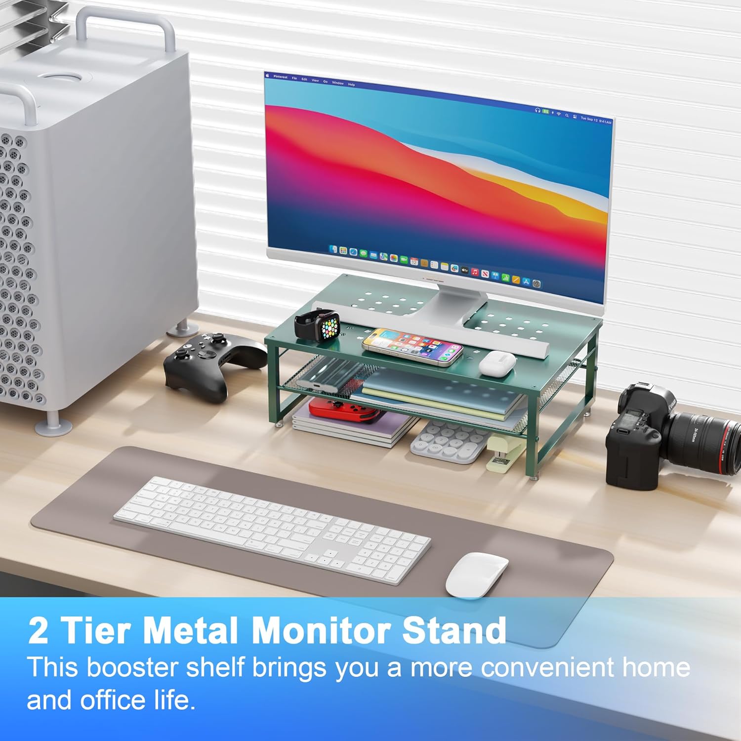 gianotter 2-Tier Metal Monitor Stand Riser, Desk Organizer for Monitor, Office Desk Storage Organizer for Office Supplies (Dark Green)