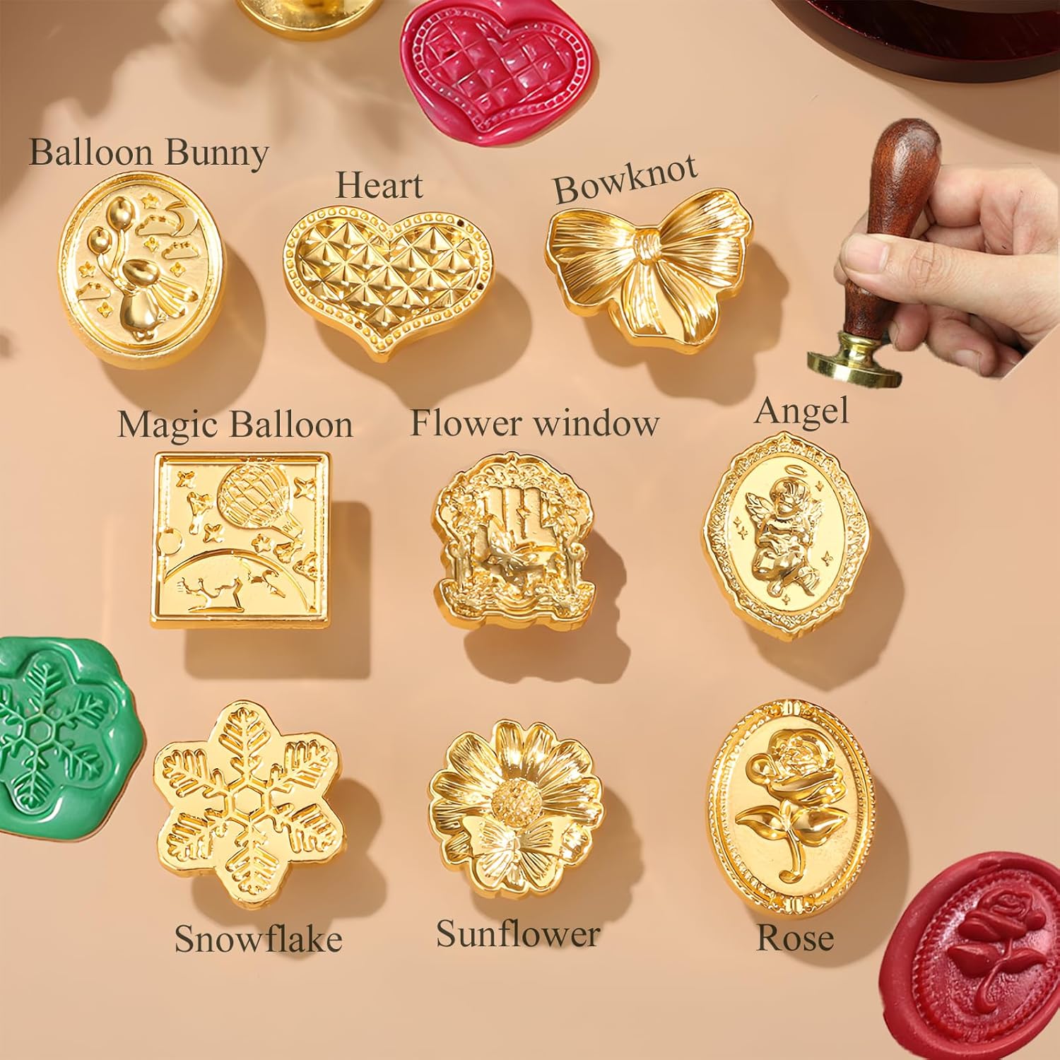 - Unique Vivid Patterns: The seal wax stamps feature beautiful designs such as Heart, Bunny, Rose, Bowknot, Balloon, Sunflower, Angel, Snowflake and Windowviews, providing you with delightful and exquisite designs that enhance your decorations.