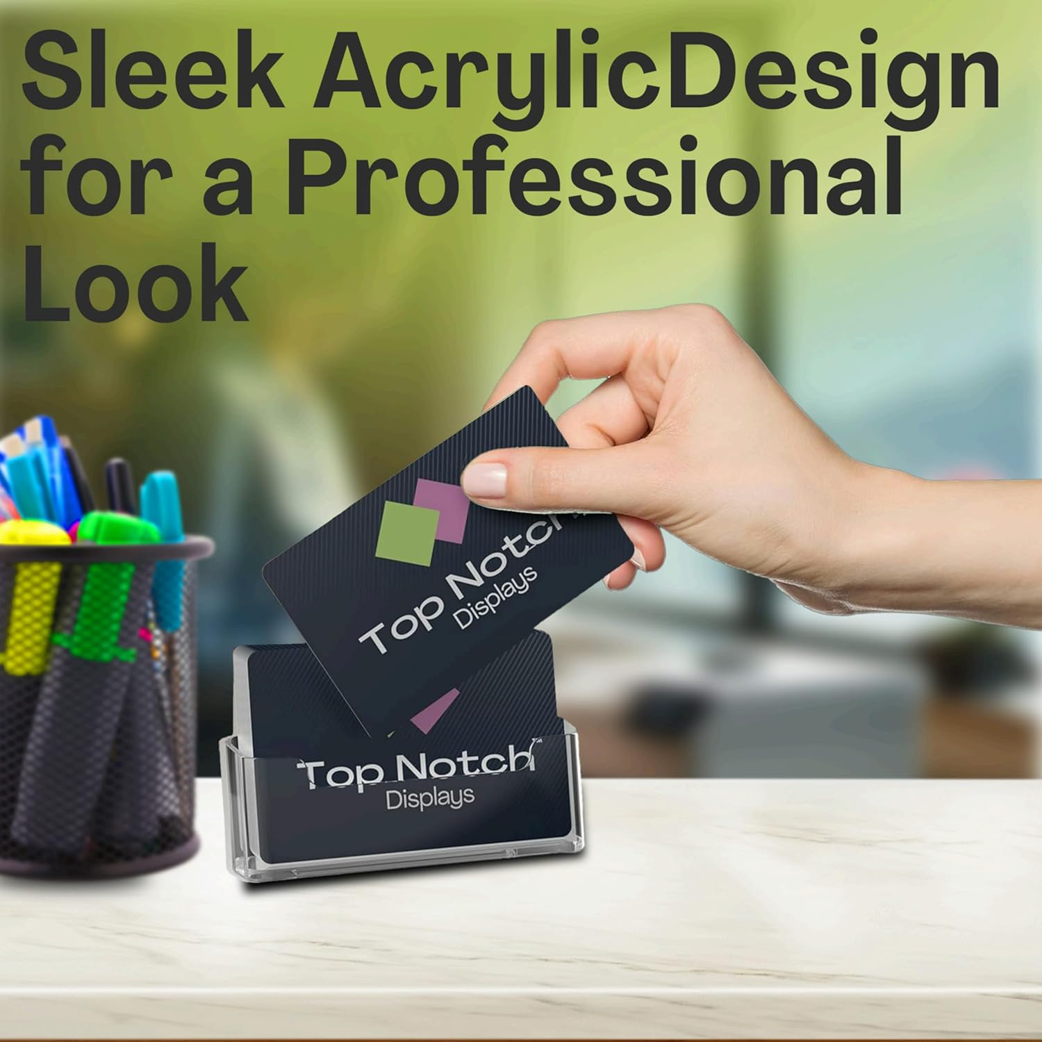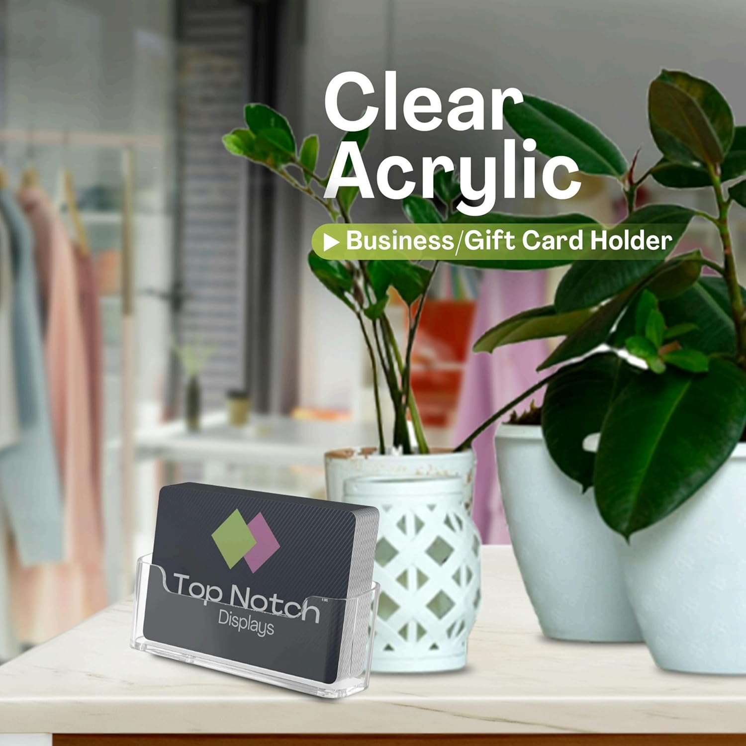 - MULTI-USE ACRYLIC CARD HOLDER: Our business card display holder is greatfor both business and personal use. Display business cards, gift cards, loyalty cards, and name cards with style. Our acrylic business card holder display fits any setting, ideal for home, offices, retail stores, trade shows and much more!
