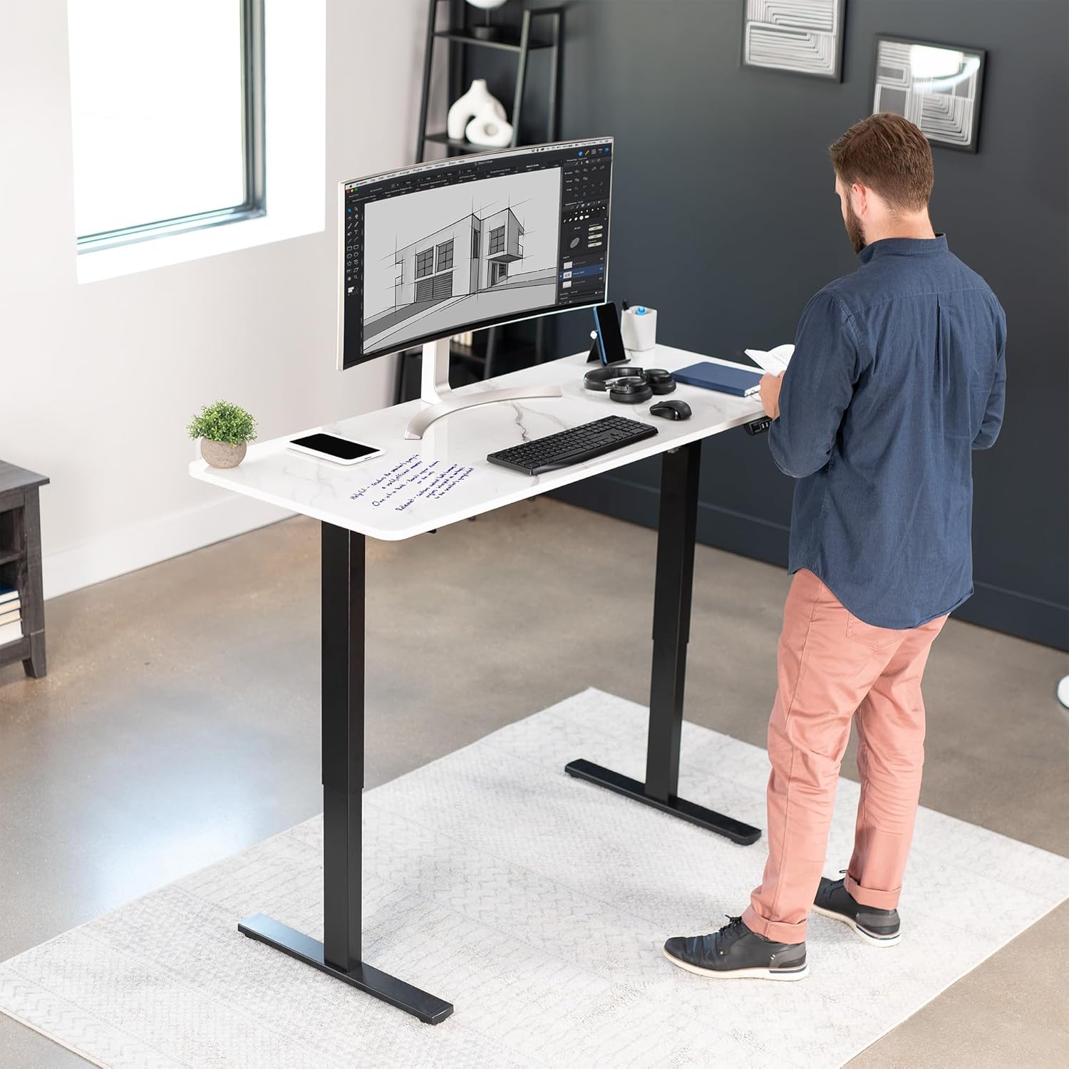 VIVO Electric Dry Erase 60 x 24 in Standing Desk, Memory Height Adjustment, 1B Series, White Marble Pattern Top, Black Frame, DESK-KIT-1B6WM