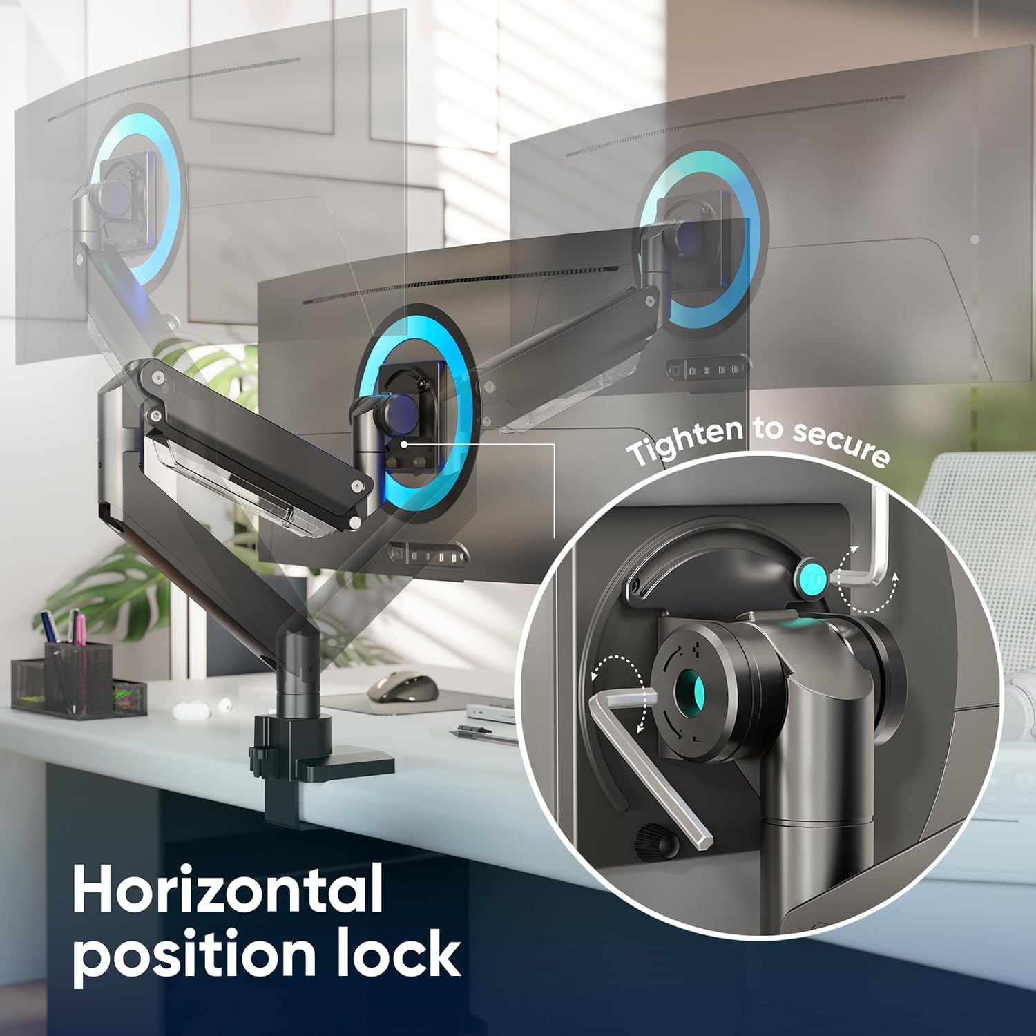 - ERGONOMIC SOLUTION | This computer monitor desk mount is widely adjustable | Long reach monitor arm mount can extend up to 23” from the base | Correctly positioned arm for monitor will protect your eyesight and posture | With our gaming monitor arm ultrawide you will easily plunge into work or relax afterwards!