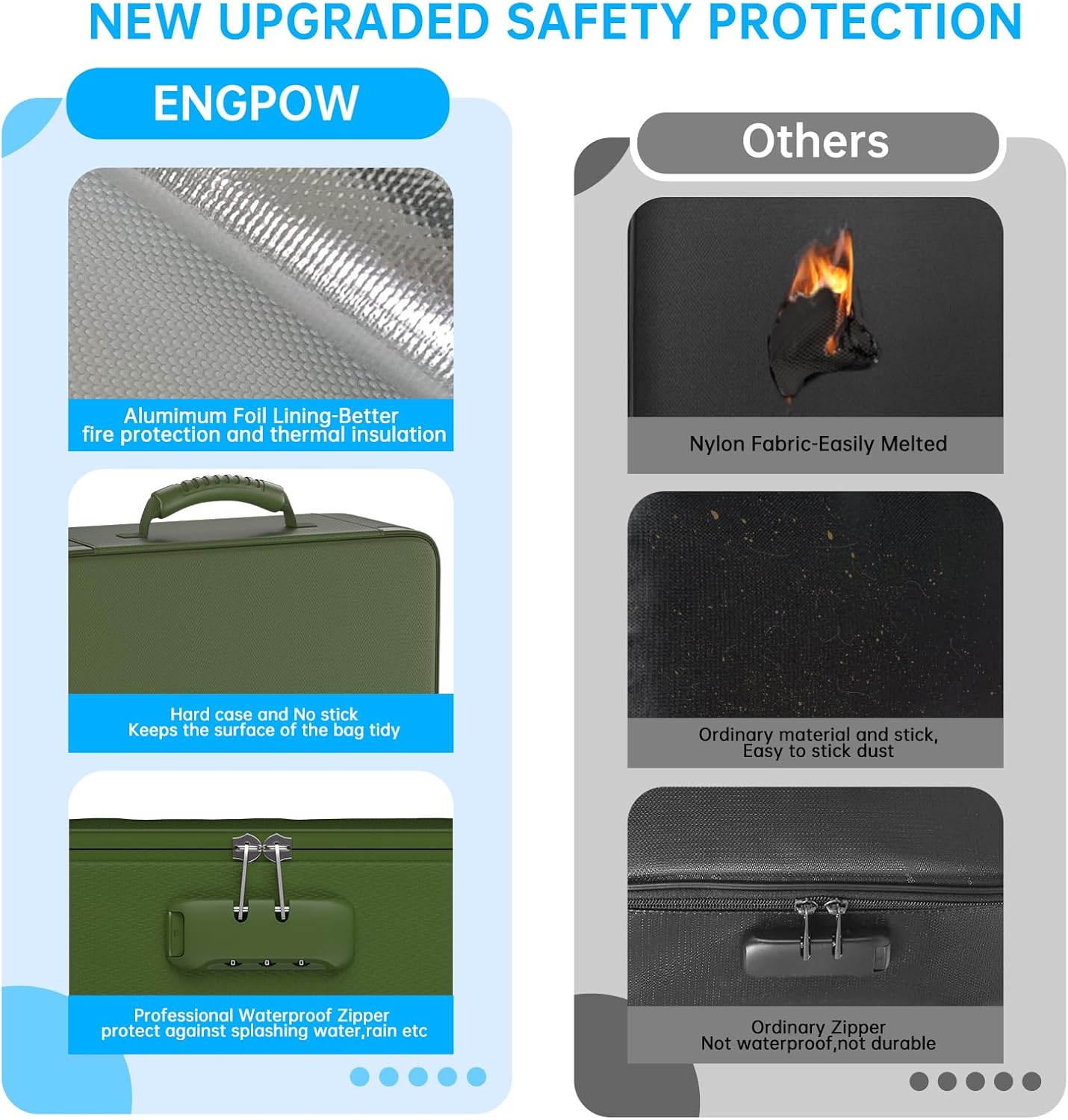 ENGPOW 5200℉ Fireproof File Organizer Bag with 13 Pocket Accordion File Folder,Document Organizer Box with Lock&Labels,Multi-Layer Portable Home Travel Safe Storage for Important Documents,Green