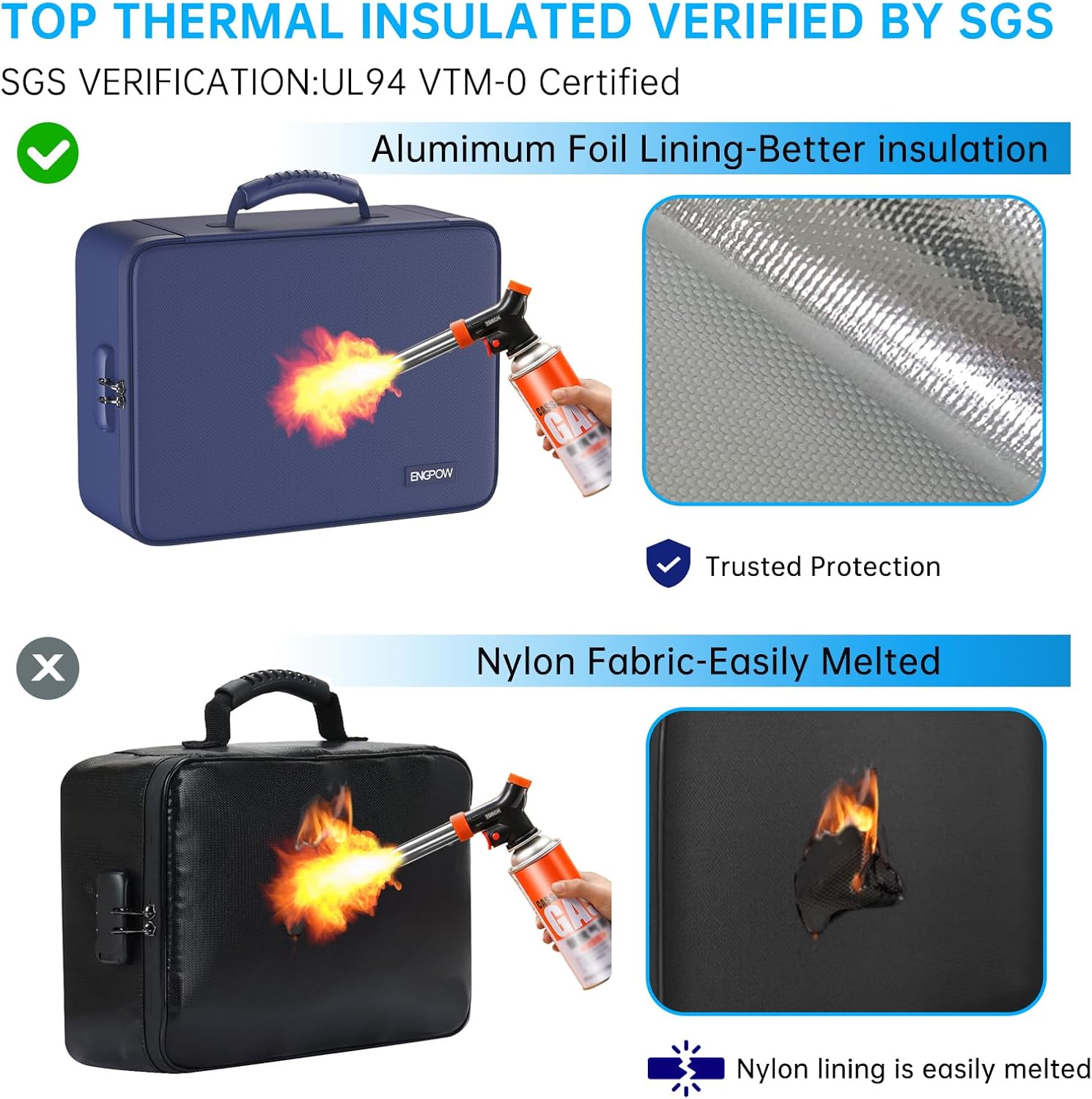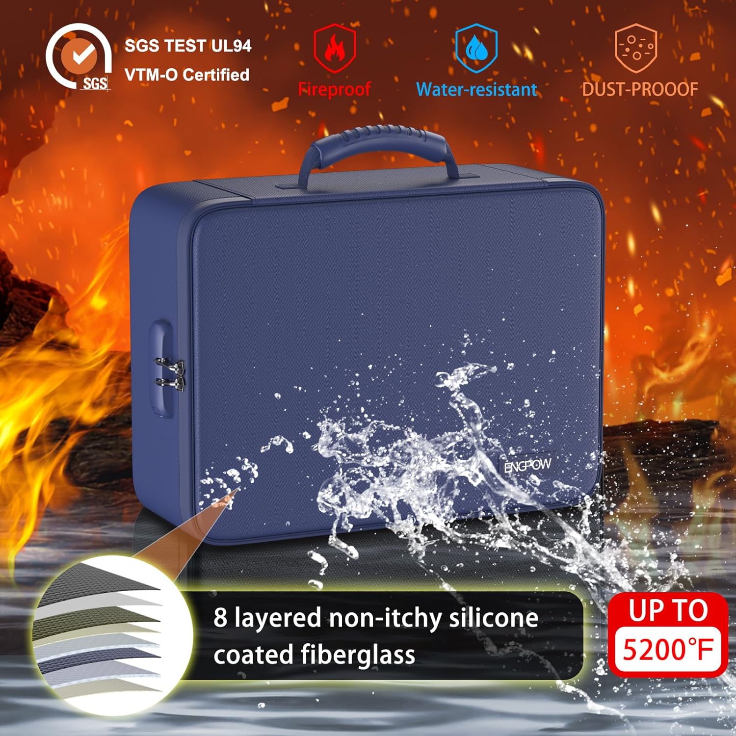ENGPOW 5200℉ Fireproof File Organizer Bag with 13 Pocket Accordion File Folder,Document Organizer Box with Lock&Labels,Multi-Layer Portable Home Travel Safe Storage Box for Important Documents,Blue