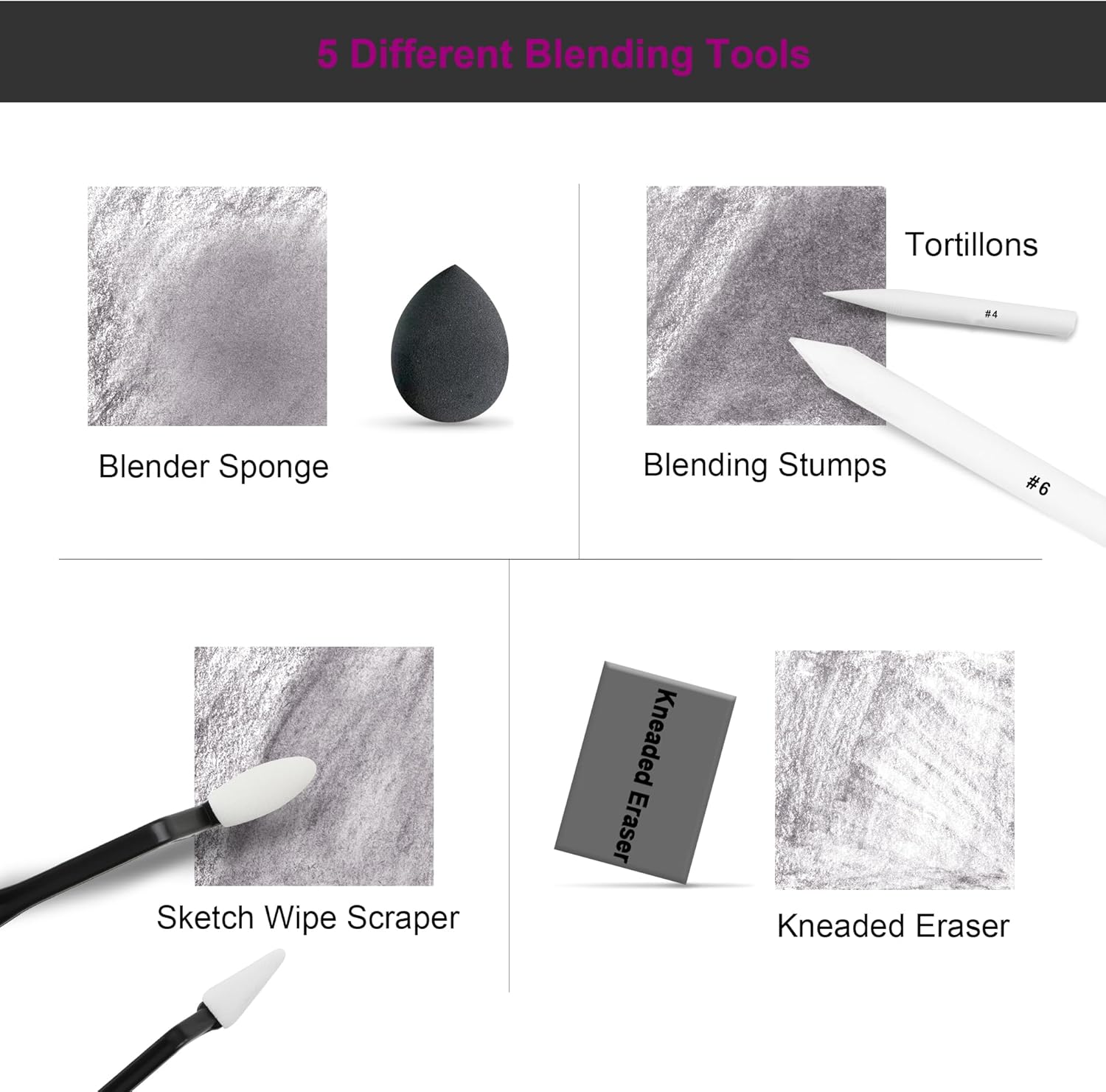 - 【Extra Drawing Sketching Supplies Kit 】This sketching set includes almost all the accessories for sketching and drawing,includes 8 blending stumps(#1-#8),4 tortillions(#1-#4),2 sketch wipe scrapers,20 replacement heads,1 blender sponges,1 kneaded and 1 vinyl eraser,1 sandpaper block,2 sharpeners,1 pencil extender,1 plastic ruler,1 art knife,1 masking tape,2 binder clips.These extras are essential for artists and beginners.