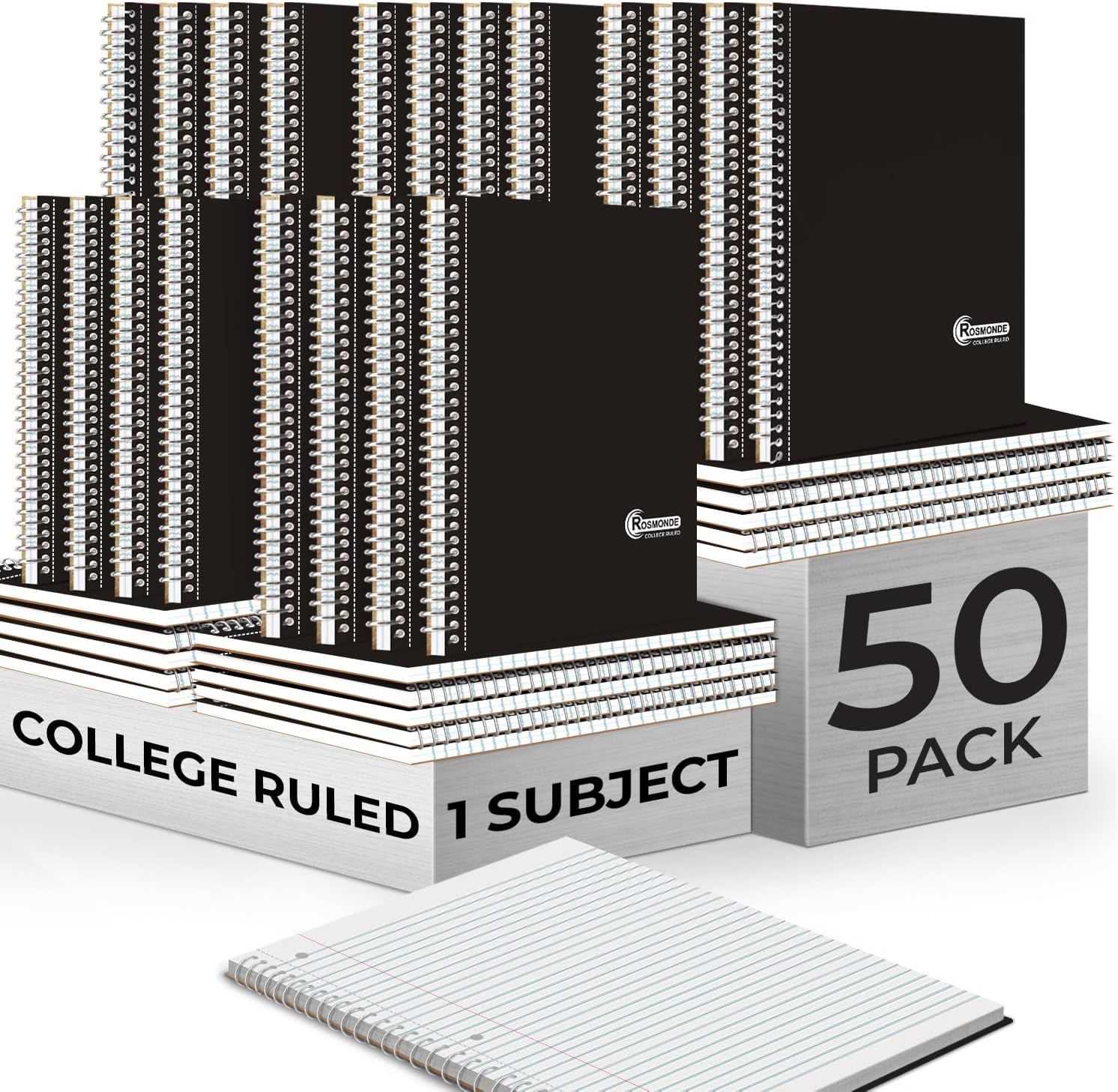 - A CLASSROOM CLASSIC: This 50-pack of 1-subject notebooks helps you identify your subjects at a glance. You can always rely on Rosmonde notebooks to keep up with your busy day! Rosmonde Spiral Notebooks come with high quality sturdy and ink-bleed resistant paper, which makes them the perfect choice for Home, School or Office needs.