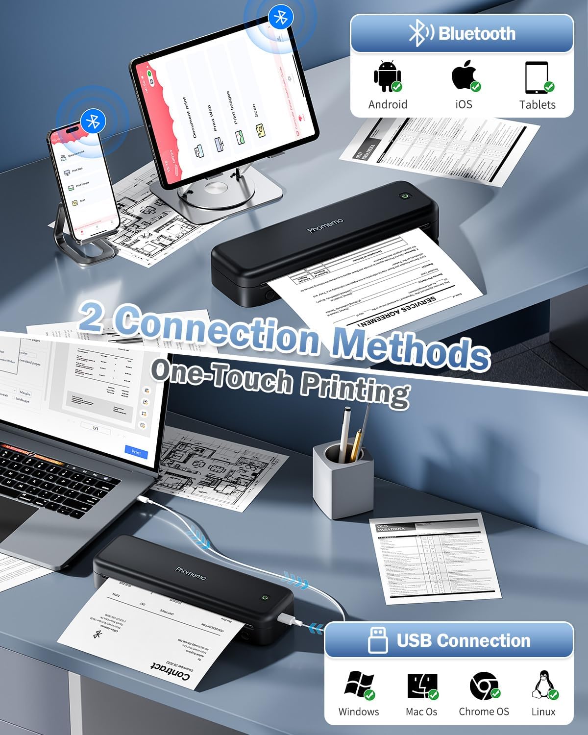 Phomemo M834 Portable Printer Wireless for Travel Upgraded, Bluetooth Thermal Printer 8.5" x 11"&A4, Compatible with iOS,Android & PC,Inkless Mobile Printers for Travel,Office,School,Home,Black