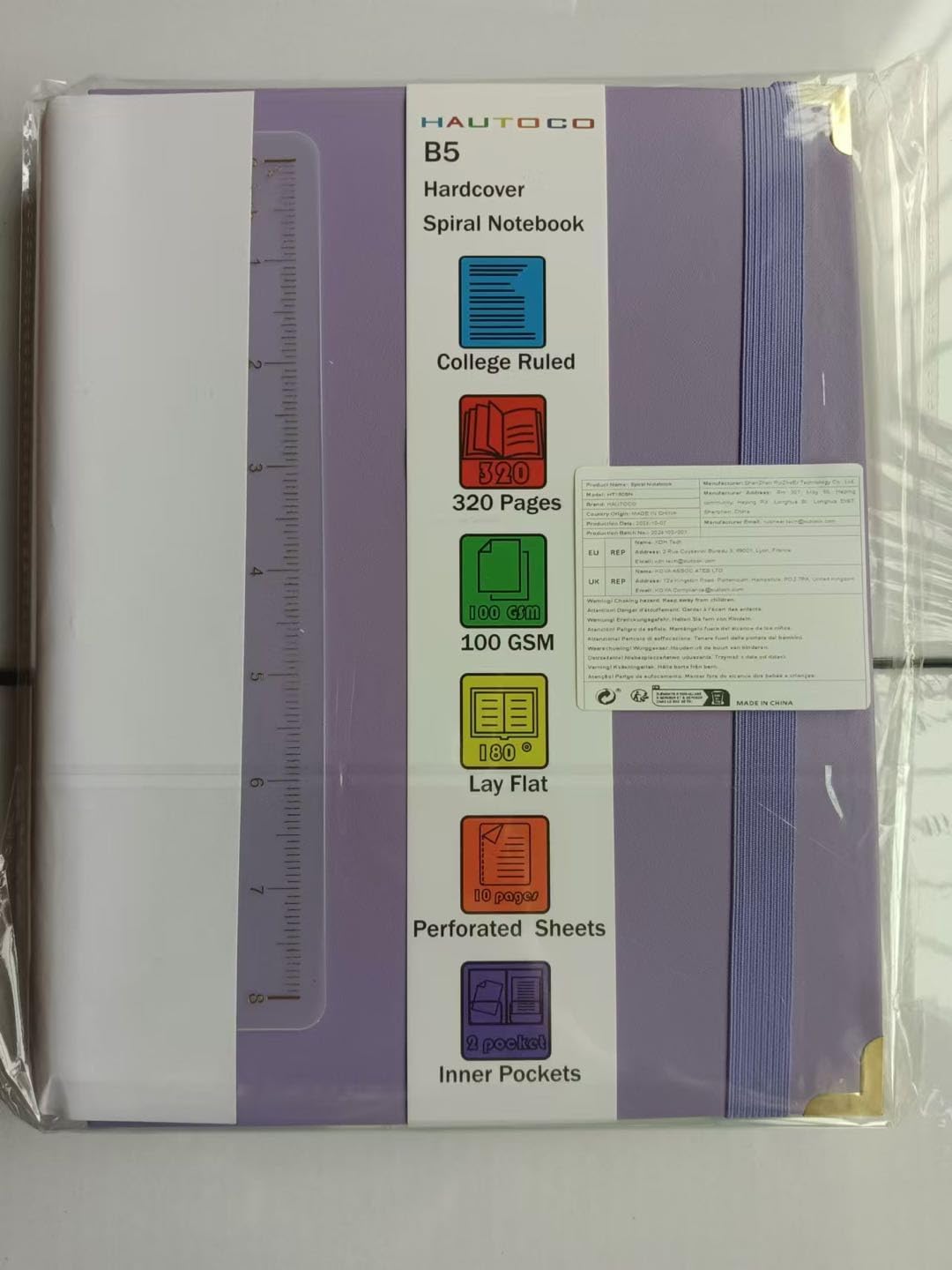 HAUTOCO Spiral Notebook, B5 Purple Hardcover Leather Notebooks, College Ruled Notebook with 320 Pages, 100 GSM Paper, 7"x 9.7" Lined Journaling Notebooks for Girls Women Work School Office
