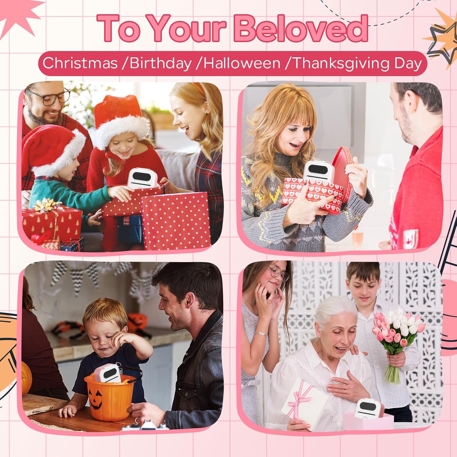 - Custom Label Maker: This small portable printer is suitable for use with family and friends during Halloween, Thanksgiving, birthdays, and other holidays. Also you can DIY design patterns and cut out various shapes to meet your needs
