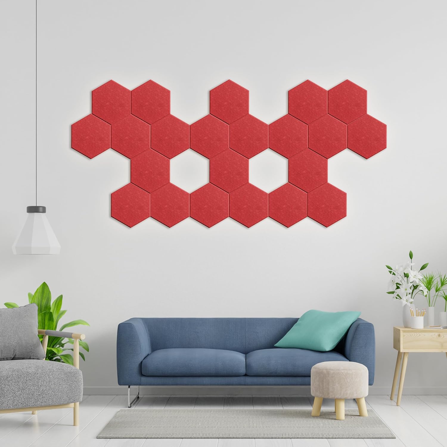 Hexagonal Acoustic Panels-18 Pack High-Density Sound Absorbing Panels 12"X10"X0.4" for Enhanced Noise Reduction, DIY Design, Idea for Studios, Offices, and Home Theaters(Cherry Red)