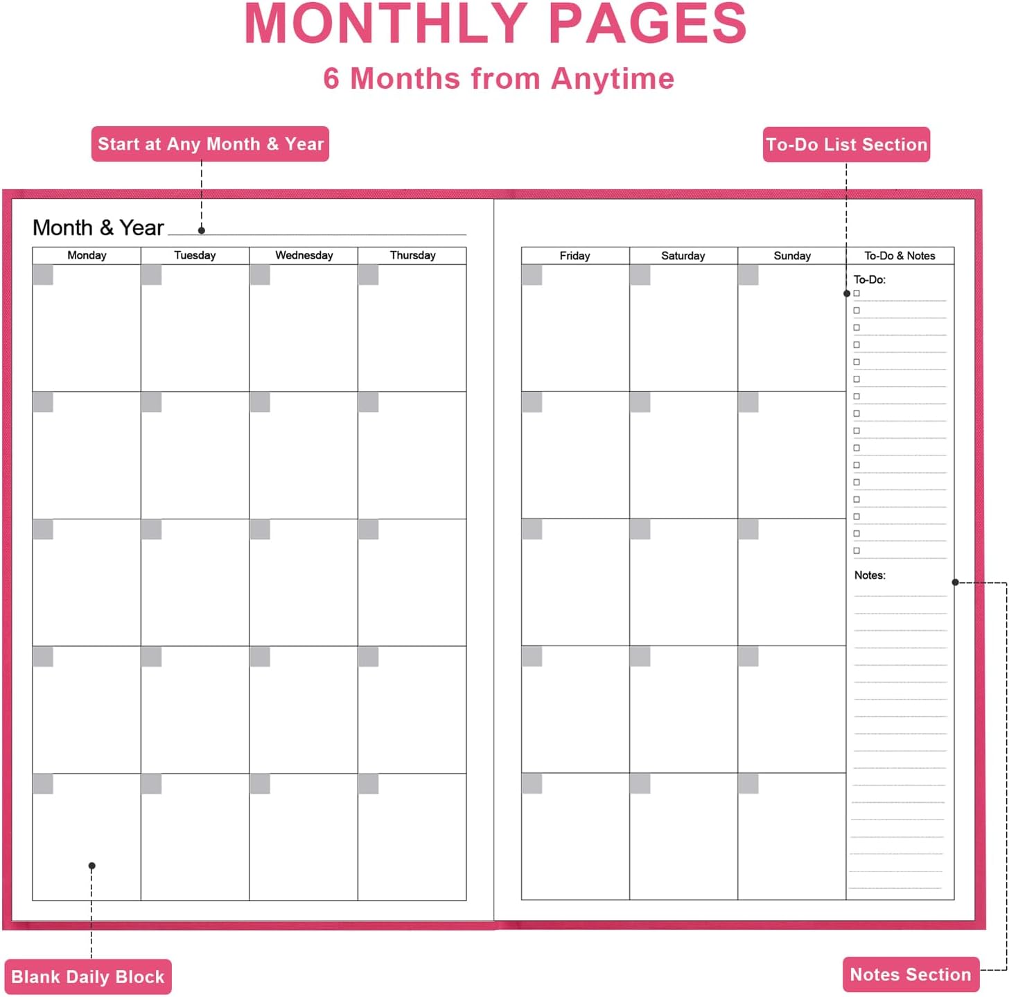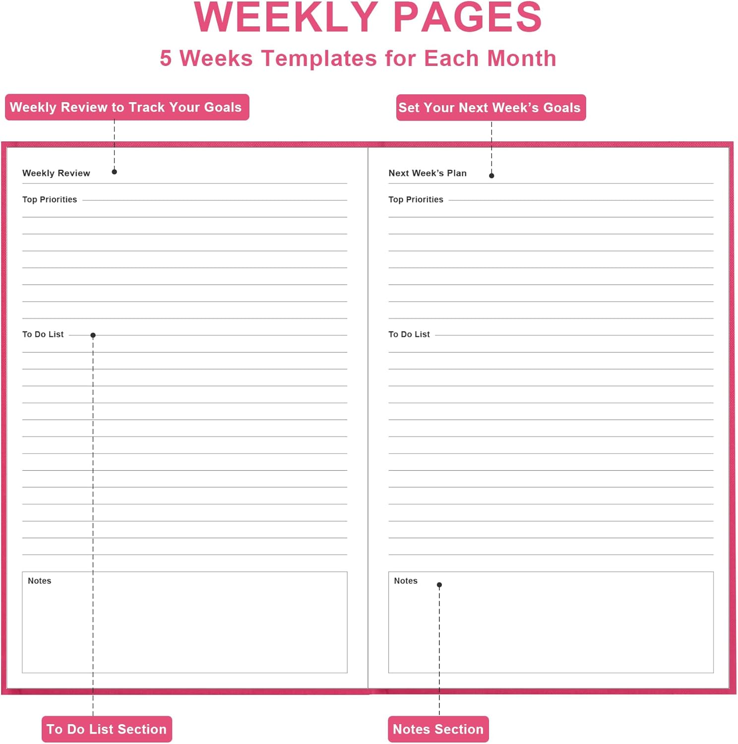 - 30 Weeks Undated Monthly Planning – Daily Monthly Undated planner, to-Do List, Task tracker together for monthly affairs. Track priorities for each month and use the checkbox as a visual reminder. 30 weeks pages to track daily rituals, it also has section for your week’s top priorities, to do list, notes of the week and weekly review of your wins and how to improve next week.