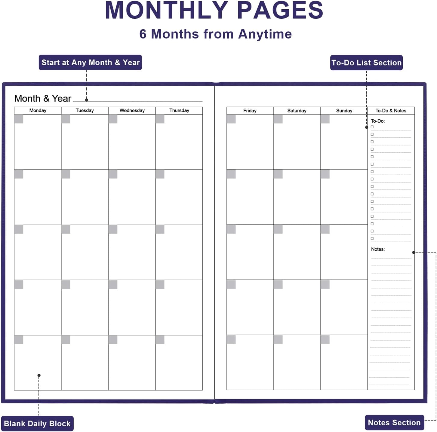 - 30 Weeks Undated Monthly Planning – Daily Monthly Undated planner, to-Do List, Task tracker together for monthly affairs. Track priorities for each month and use the checkbox as a visual reminder. 30 weeks pages to track daily rituals, it also has section for your week’s top priorities, to do list, notes of the week and weekly review of your wins and how to improve next week.
