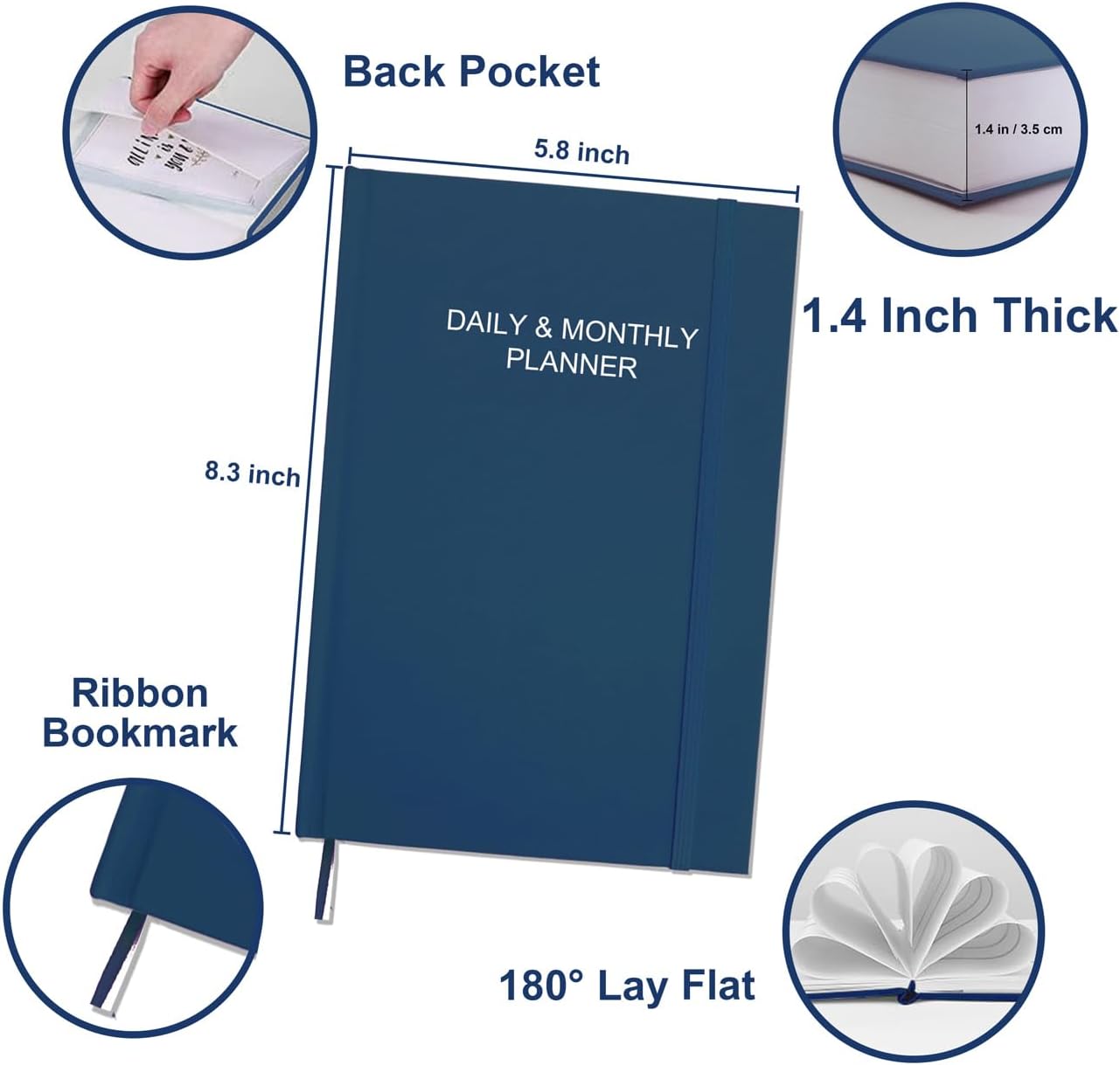 Daily & Monthly Planner for 2025 2026 or Anytime - ADHD Planner Two Pages Per Day, Daily Planner Undated to Increase Focus, Eliminate Overwhelm, Achieve Your Biggest Goals, 5.8'' × 8.3'', Blue