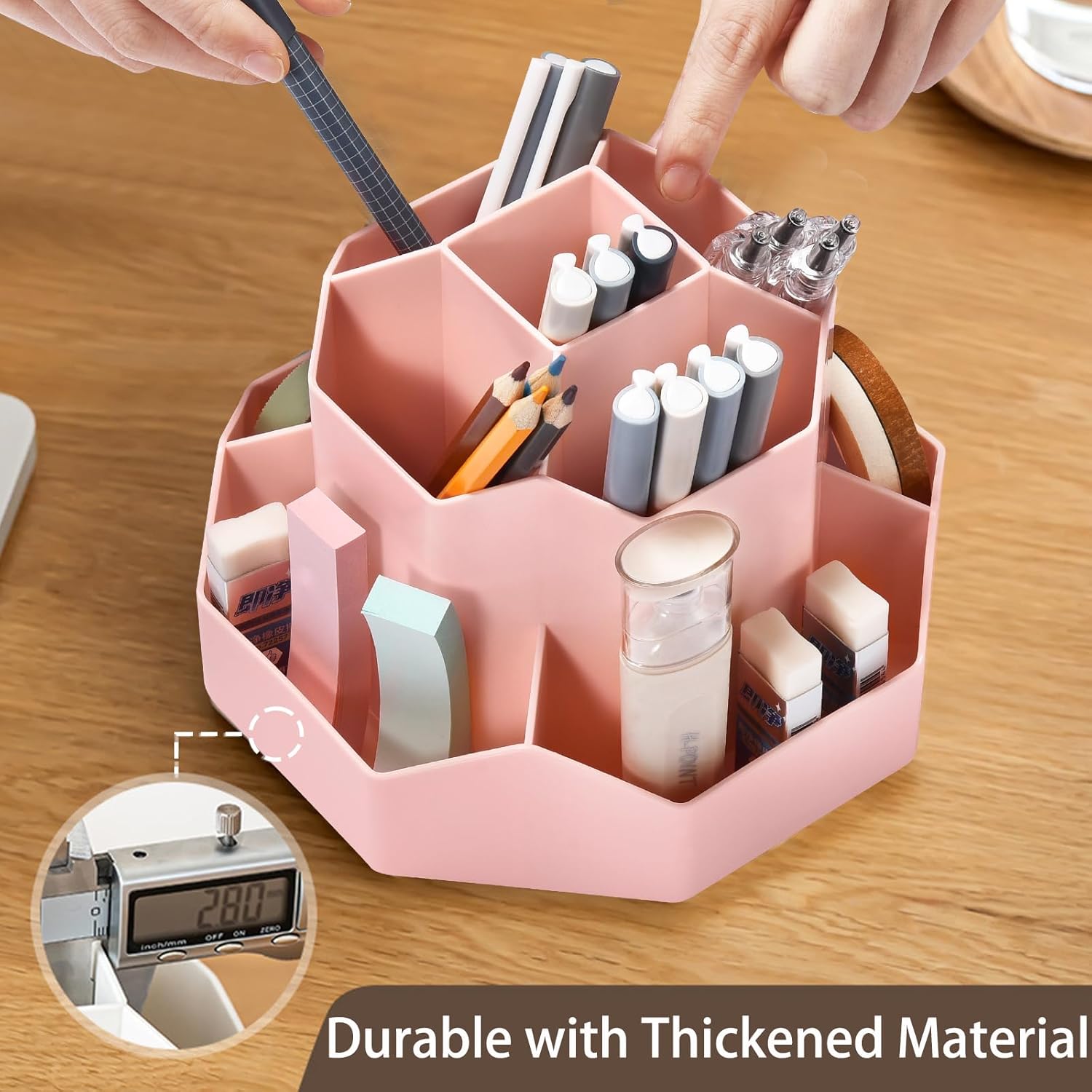 - ă360 Degree Revolving DesignăThis pen organizer for desk can be turned up to 360-degree rotation. It spins smoothly all around without getting stuck. Easy to access, easy to get from any angle, always keep your desk tidy and organized.