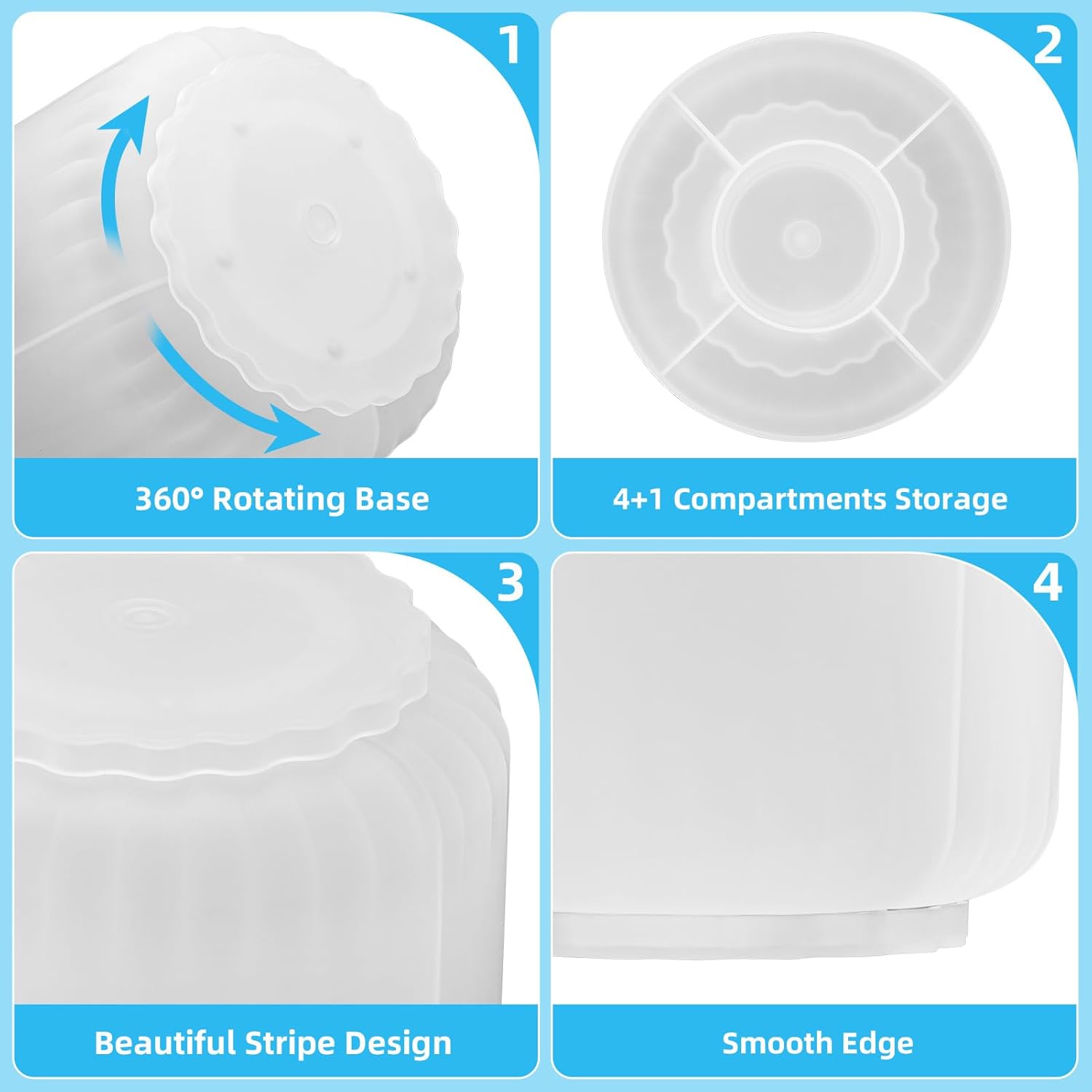 - ăSpace-Savingă: The special round design of the organizer was designed to make items easy to reach, even when stored on upper shelves; Divided into 5 compartments, this spinning container makes it easy to separate and store a wide variety of items; Use this convenient storage to keep children's crafting items all in one place; Great for school supplies, Perfect for home or commercial workspaces