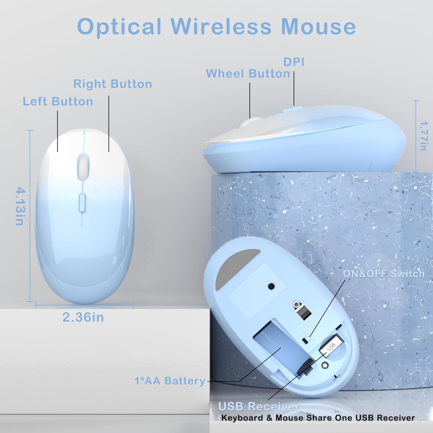 Colorful Wireless Keyboard and Mouse Combo, COVEVA 2.4GHz Wireless Retro Cute Round Keycaps Keyboard, 104 Keys Full-Sized Keyboard Mouse Set with Switch Button for PC Laptop Desktop (Blue Gradient)