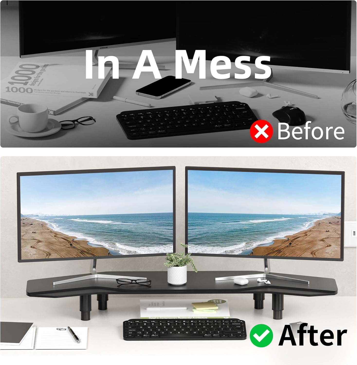 - Sturdy and Durable Construction: The panel measures 39.3 inches × 11.8 × 0.47inches, offering ample space for your monitor or laptop.Made from high-quality wood with a sleek black finish, this stand ensures stable and long-lasting support for your monitor or laptop. Its robust construction is designed for durability.