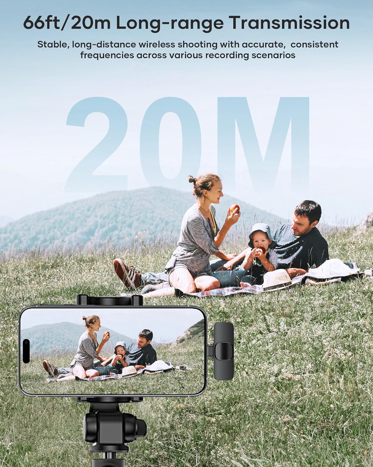 - Portable Wireless Mini Microphone: With a compact and portable design, this mini microphone can be handheld or clipped onto clothing. The iPhone-specific microphone provides stable transmission within a range of 66 feet in unobstructed environments. Ideal for influential content creators, TikTokers, and YouTubers, it ensures clear long-distance recording or video shooting both indoors and outdoors.