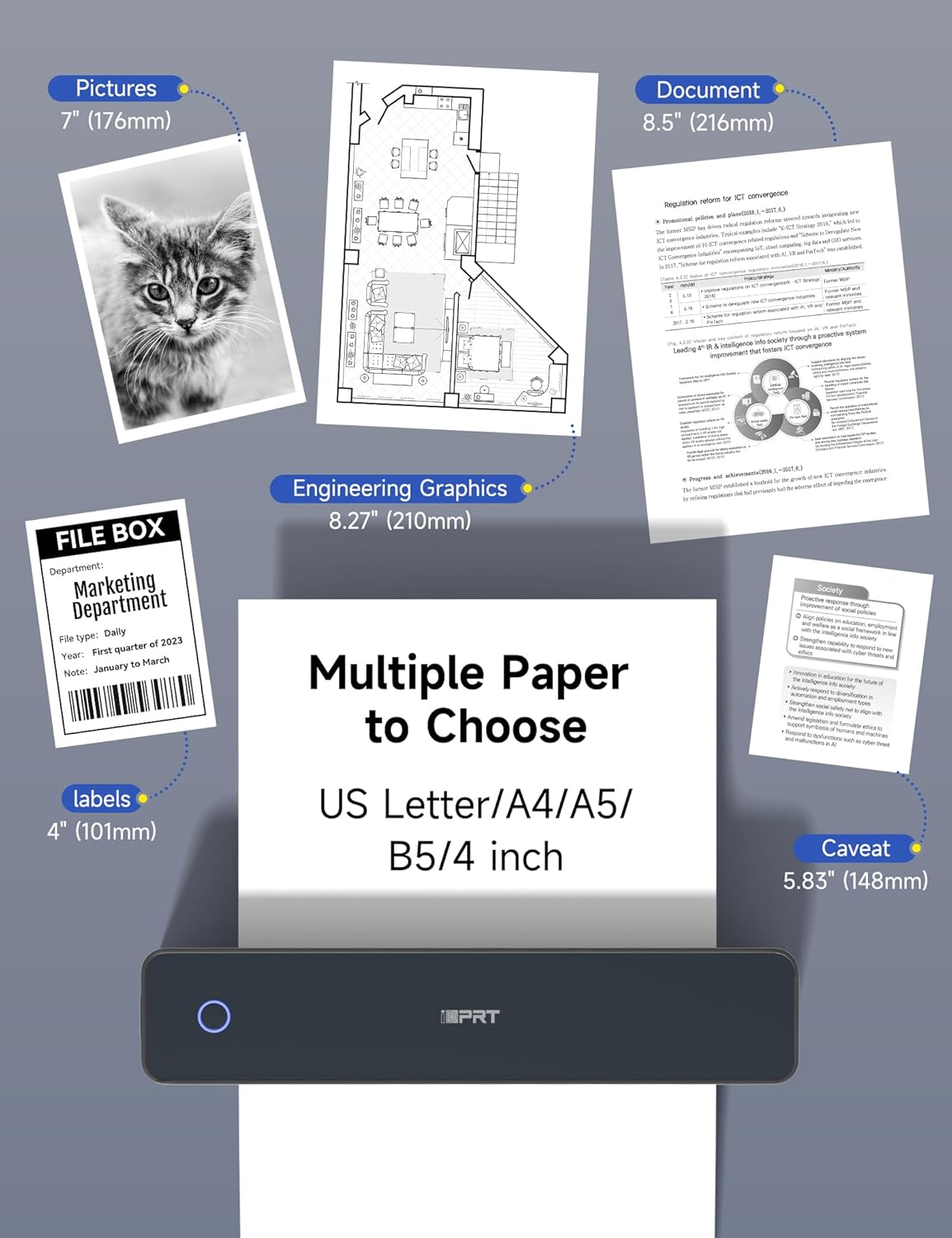 iDPRT MT610 Pro Portable Thermal Printer, 300DPI HD Mobile-Travel-Printers, Inkless-Wireless-Small-Printer for Home Use, Office, Vehicles, Bluetooth Printers Supports 8.5" x 11" US Letter&A4&A5 Size