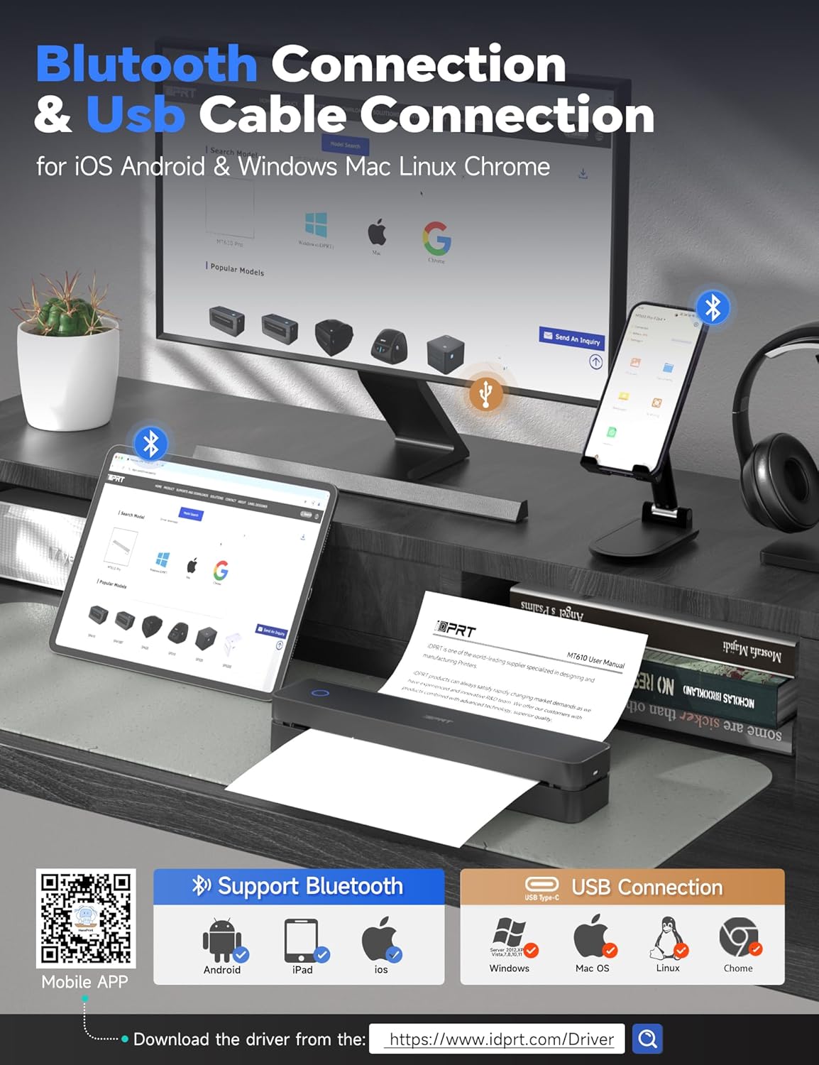 - ✅COMPUTER-DRIVEN PRINT:Step 1: Connect the MT610 Pro to your computer using a USB-C cable and power it on. Step 2: Download the appropriate driver for your computer's operating system from the brand's official website and install it. Step 3: Load thermal paper into the MT610 printer. On your PC, select the file, set the corresponding paper size, and start printing.