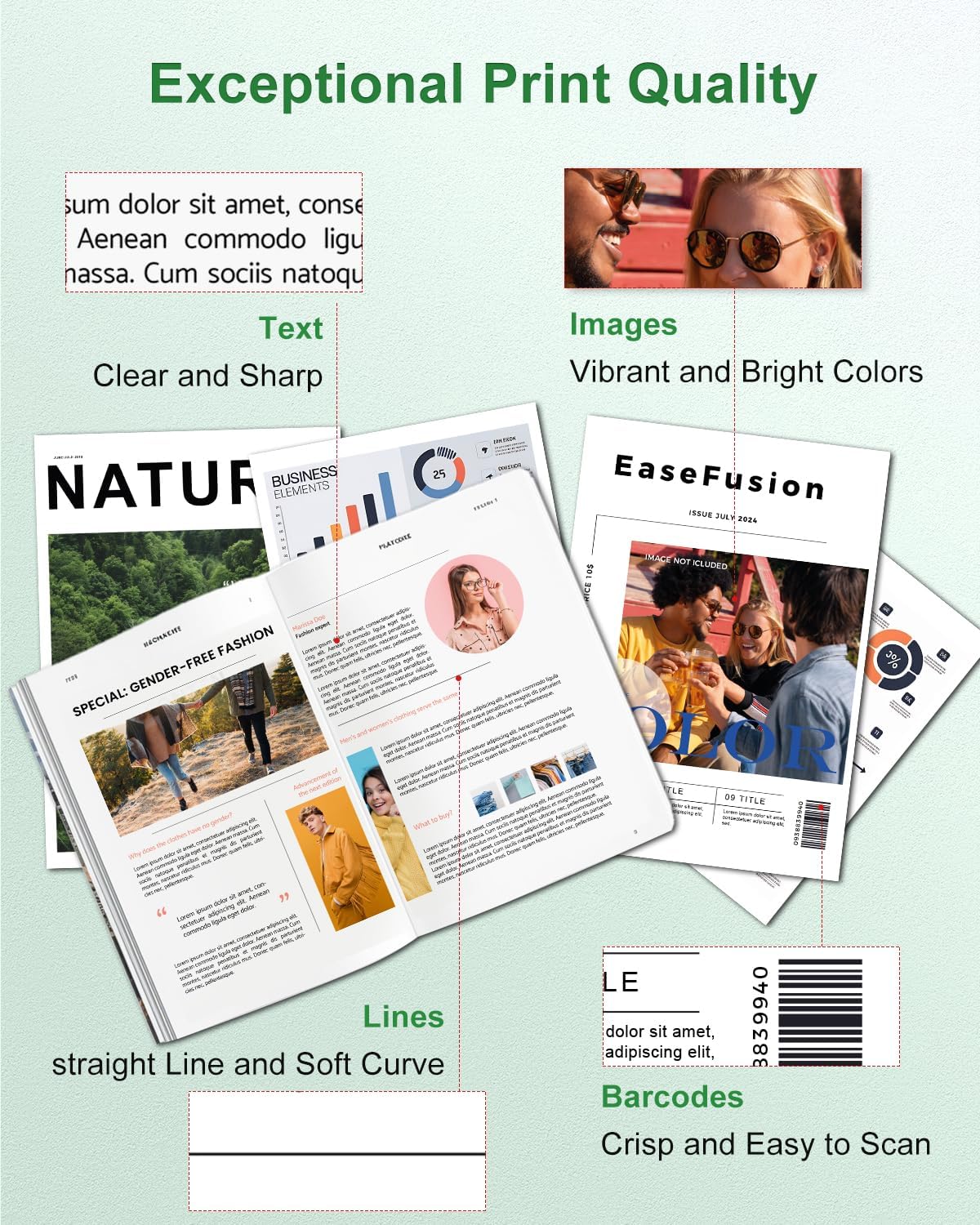 - Superior Printing Quality: All EaseFusion 62 ink cartridges for hp printers are rigorously tested to ensure consistently outstanding performance. You can enjoy sharp, clear text and vibrant, stunning colors without any blocking issues