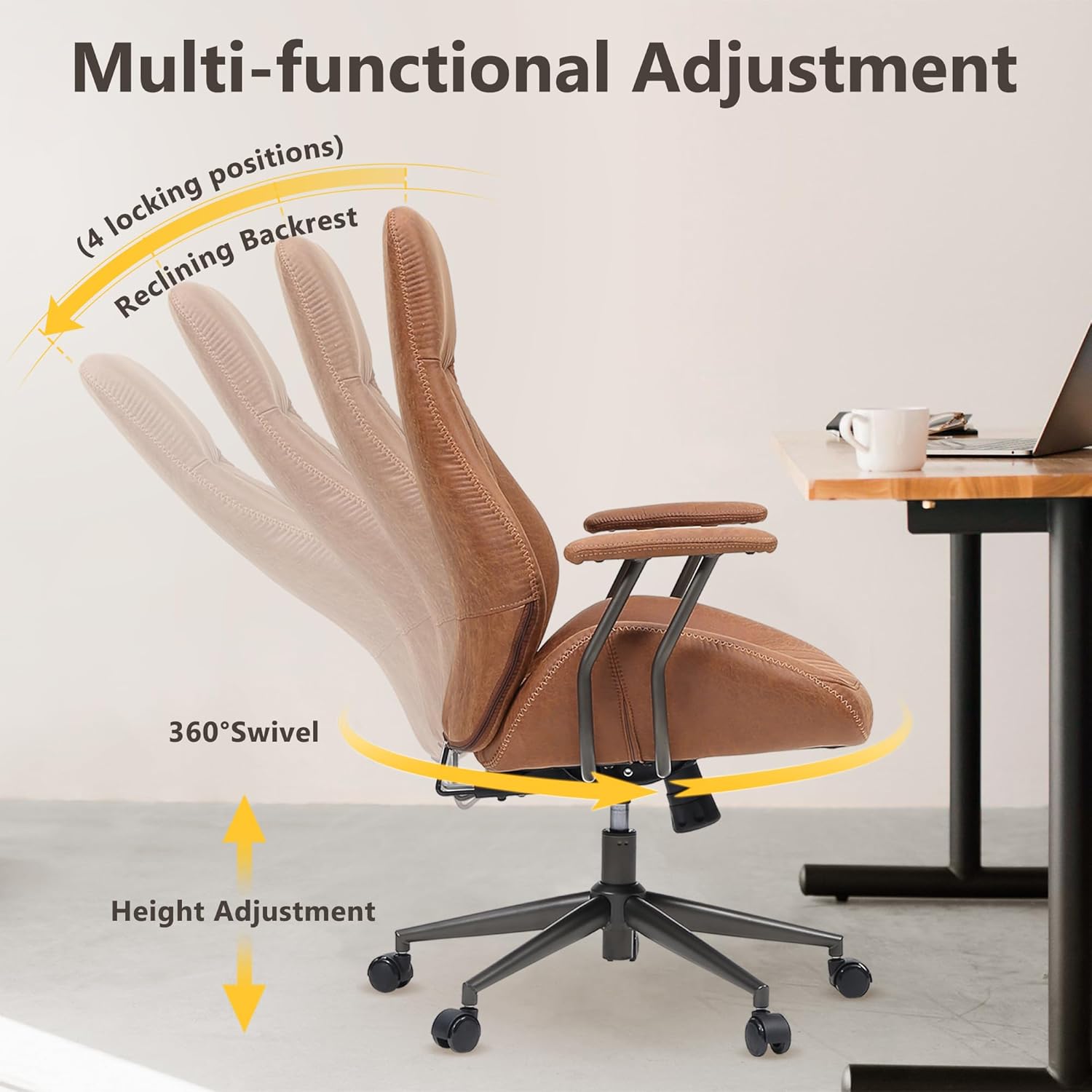 Mid Century Modren Office Chair - High Back Swivel Executive Chair with Lumbar Support,Ergonomic Computer Desk Chair with Wheels,Faux Lether Suede Task Chair,350lbs (Brown, High Back)