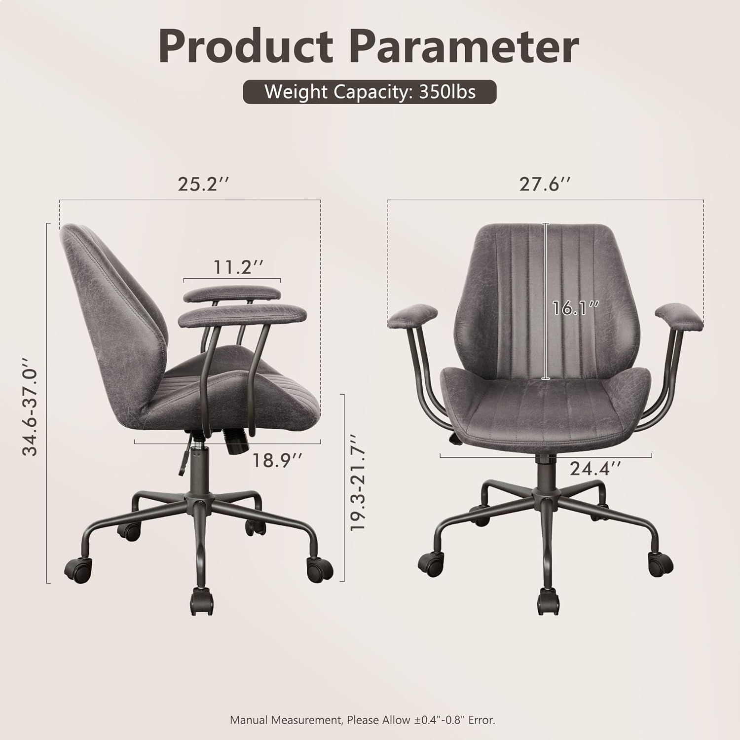 - Faux Leather Suede Fabric: Elevate your office experience with our chair's sumptuous faux suede fabric, offering an exquisite tactile experience combined with exceptional durability. Its warmth and resilience make it both easy to clean and resistant to stains, cracks, and scratches. The plush cushion, filled with high-density foam, provides unparalleled support for all-day comfort. Transform your home office with this sophisticated and functional desk chair