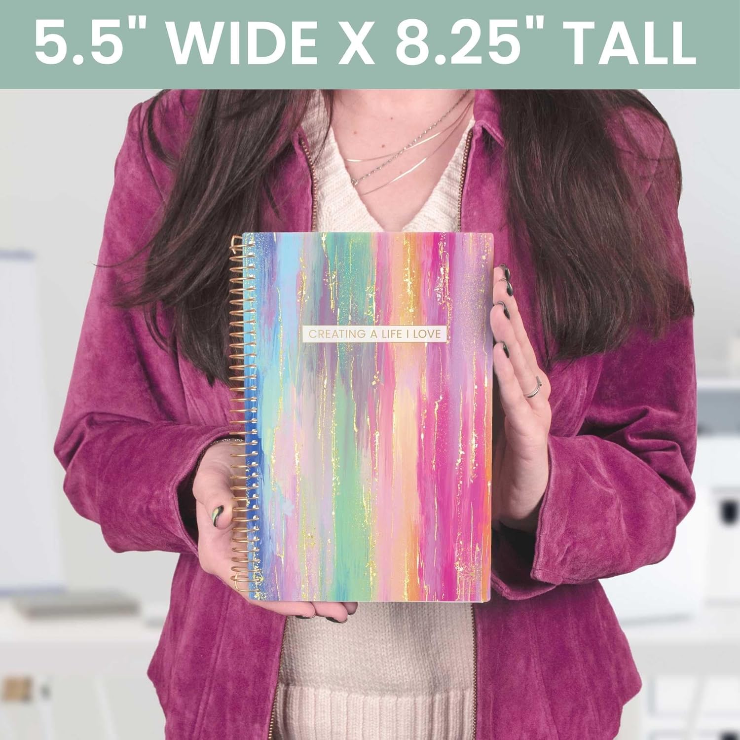 - PREMIUM FEATURES: Soft, lightweight covers made from thick cardstock with gloss film lamination, monthly tabs, deluxe 100gsm bright white bleed-resistant paper, recyclable metal lay-flat spiral binding, front and back inside storage pockets, and a FREE sticker sheet and bookmark!