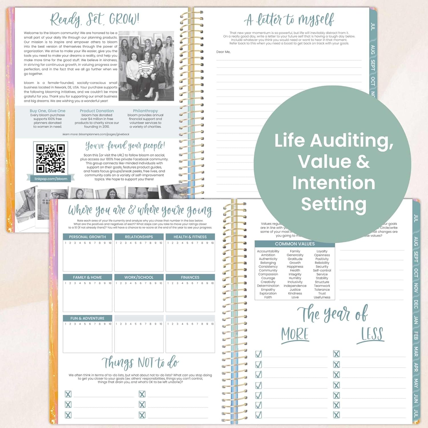 - EXTRA TOOLS FOR PERSONAL GROWTH: This office essential comes packed with life coaching worksheets and productivity tools to keep you motivated: a personal mission statement prompt, yearly goal-setting page, weekly scheduling template, habit tracker, vision board, monthly budget log, 13 note pages, inspirational quotes, monthly challenges, and more.