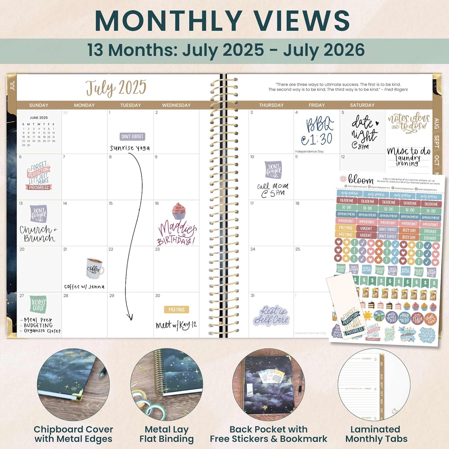 - DELUXE HIGH-QUALITY MATERIALS: This appointment book features a durable hard cover with reinforced metal corners, sturdy monthly tabs, 100gsm bright white paper, and a spiral metal binding that lays flat. Plus, a FREE magnetic bookmark and a sticker sheet included in the back storage pocket.