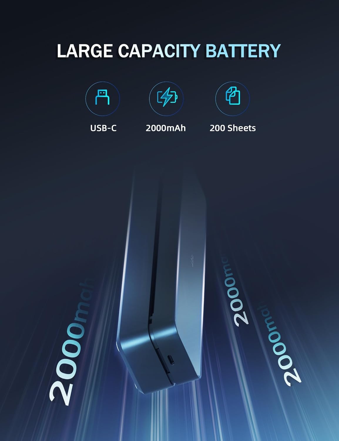 - DURABLE AND LONG-LASTING BATTERY: The travel printer comes with a built-in 2000mAh battery. Once fully charged, this battery can support up to 4 hours of continuous printing, enabling the printer to produce up to 360 sheets of paper. The 300 dpi printer is suitable for home, school, office and vehicles.