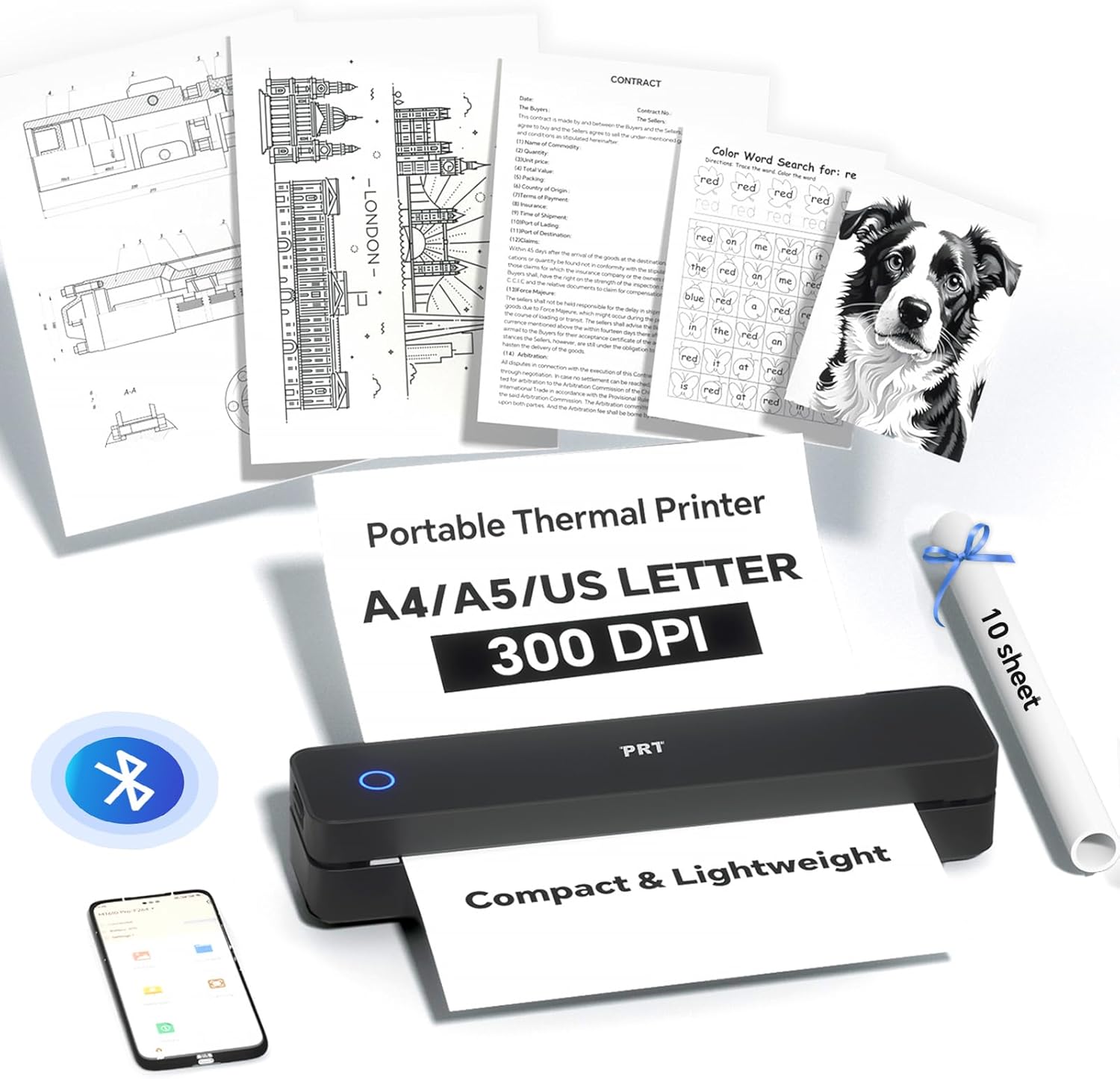 - UNIVERSAL COMPATIBILITY& WIDE PRINTING RANGE: The portable printer is compatible with a wide range of OS, including iOS (for iPhone & iPad), Android, Windows, and macOS.It supports a variety of thermal paper sizes, such as 8.5"x11" US letter and legal paper, A4, A5, and 4" - wide thermal paper.(Important: This inkless printer only supports thermal paper; regular paper is not suitable.)