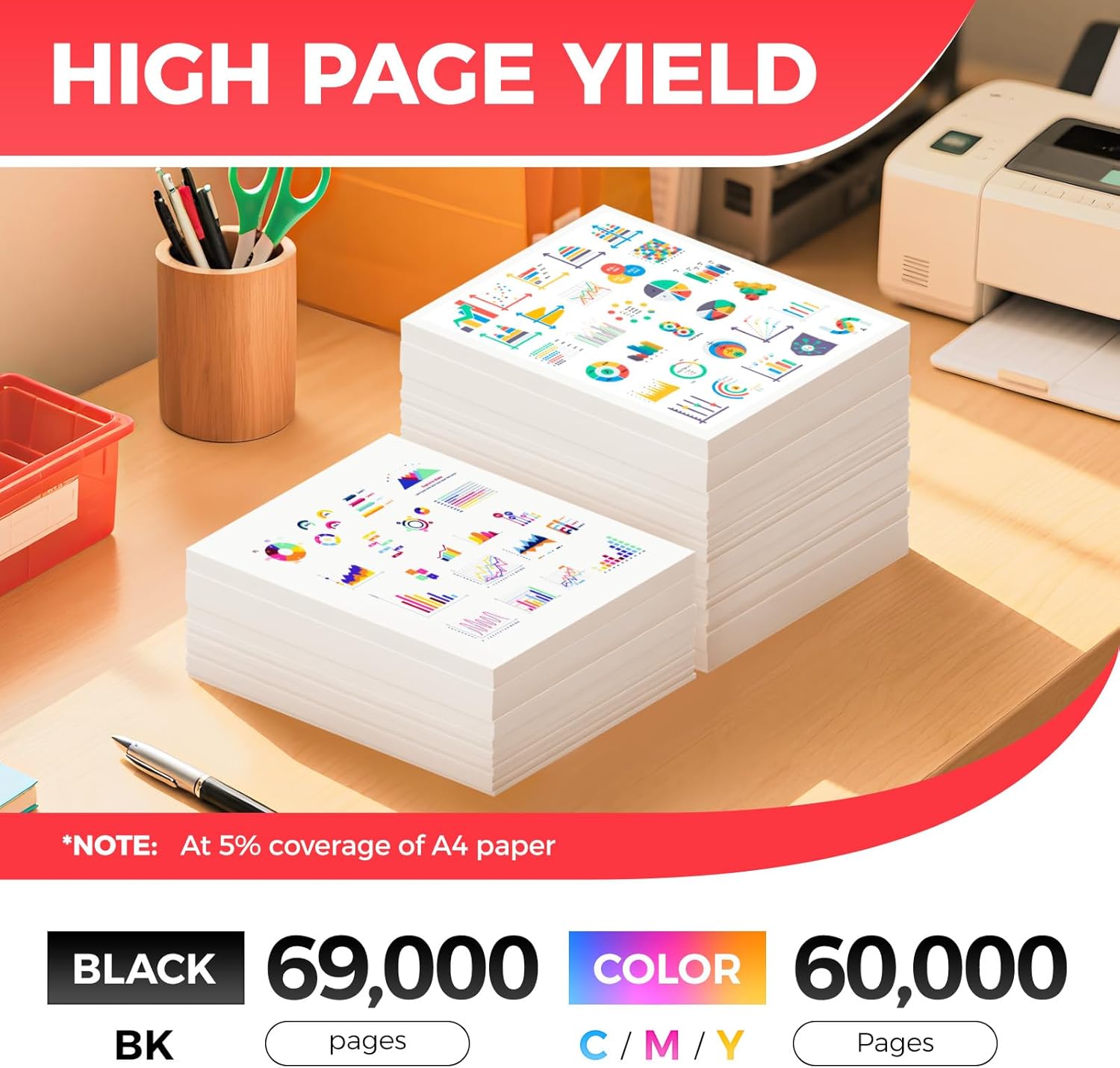 - High-Yield: up to 28,000‬ pages per GPR-55 Black and 25,500 pages per GPR-55 Color (Total 104,500 pages, A4 5% Coverage),with High Yield Version GPR55 GPR-55 toner Cartridges.