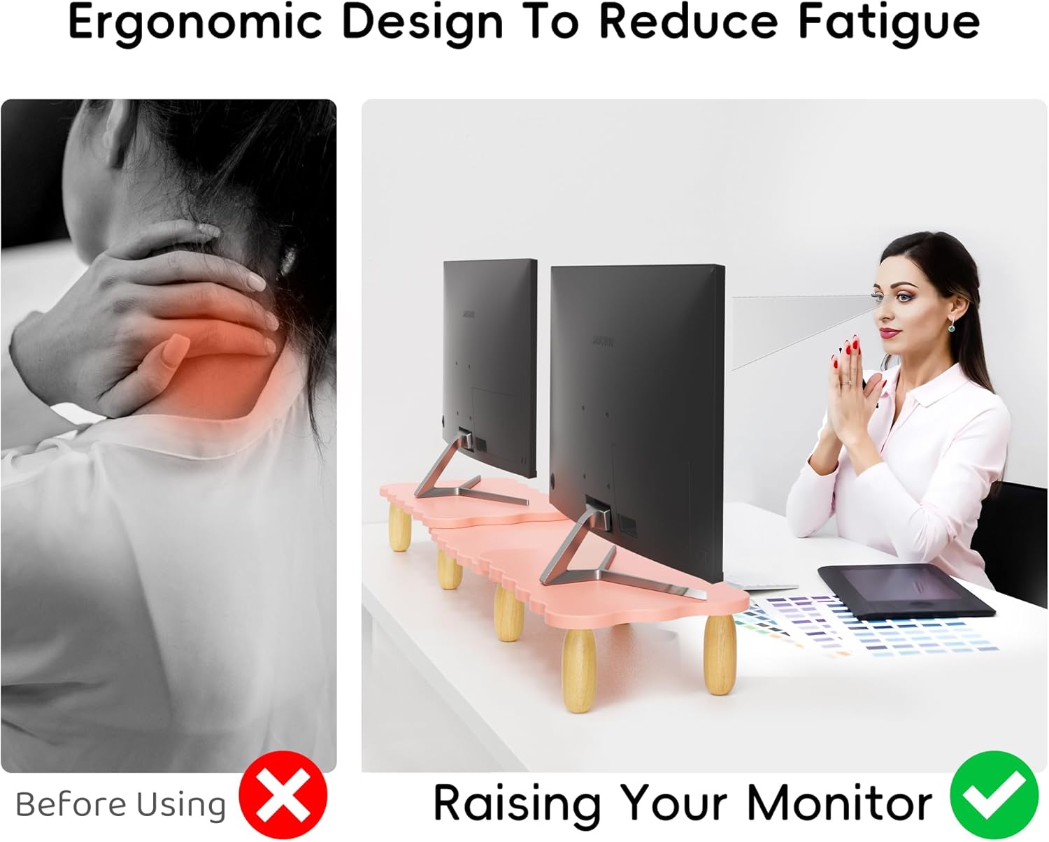 - Ergonomic Health Benefits - Elevate your monitor to a comfortable eye level with heights of 2.75" for the inner board and 3.24" for the side boards. This promotes better posture and reduces neck and back strain, making your work environment more comfortable.