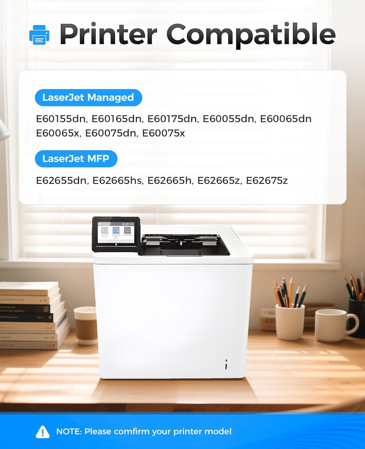- Compatible Printers: Compatible with HP LaserJet Managed E60155dn E60165dn E60175dn E60055dn E60065dn E60065x E60075dn E60075x, LaserJet Managed MFP E62655dn E62665hs E62665h E62665z E62675z Printer.
