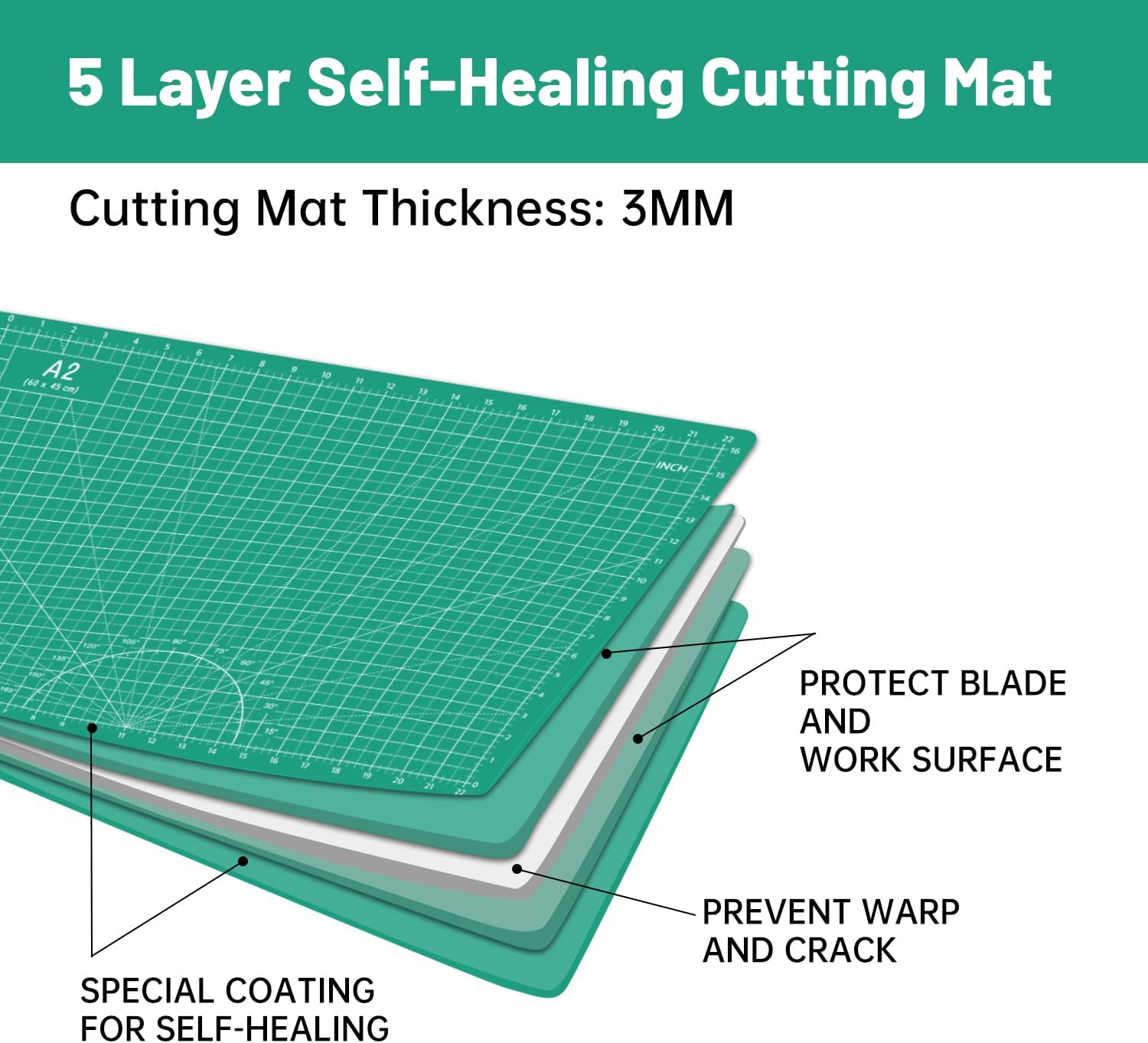- SELF-HEALING DESIGN: Made of 5-layer PVC material, Unique self healing properties protects your craft knives, straight cutting blades, rotary cutter and work surface. Re-seals after every cut.